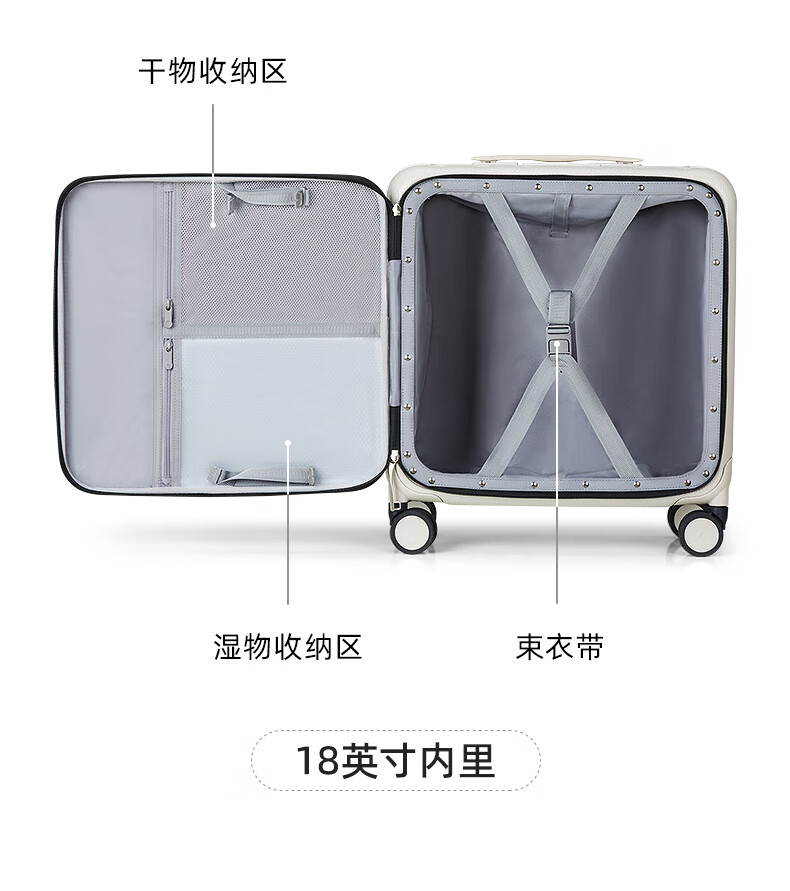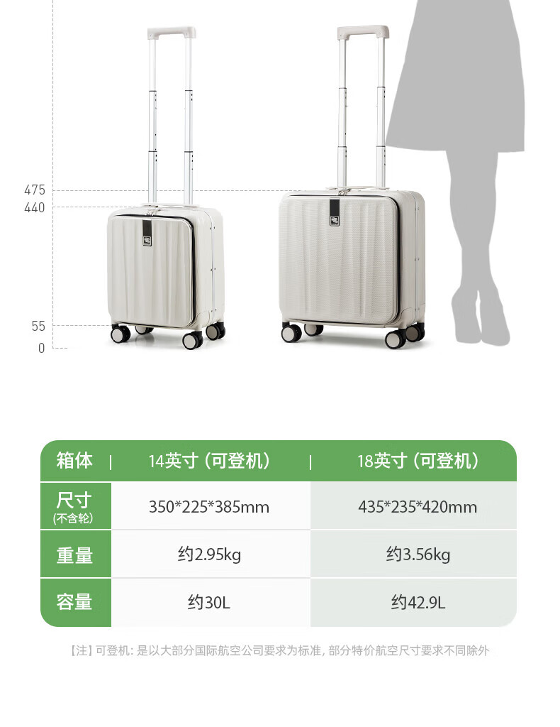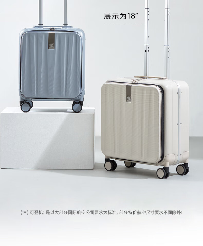 Hanker luggage men's trolley case women's boarding suitcase 14-inch ivory white password box store front side open lid aluminum frame