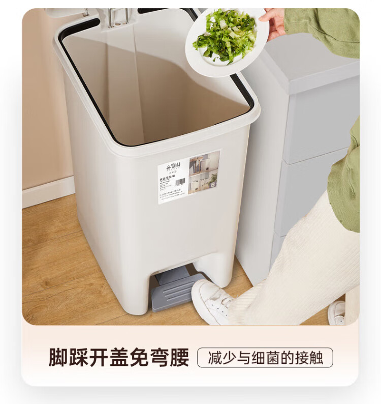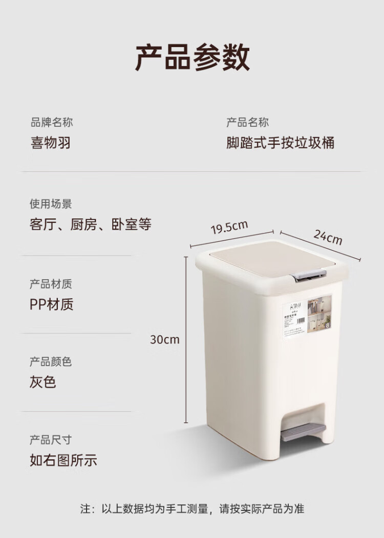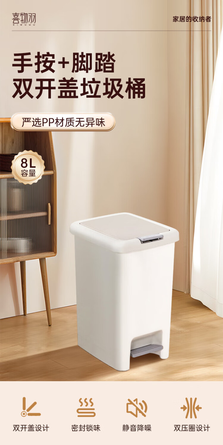 Xiwuyu foot-operated hand-pressed double-lid trash can for home bathroom living room kitchen toilet trash can with lid 8L white