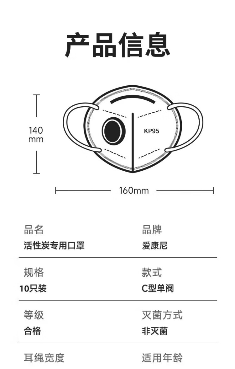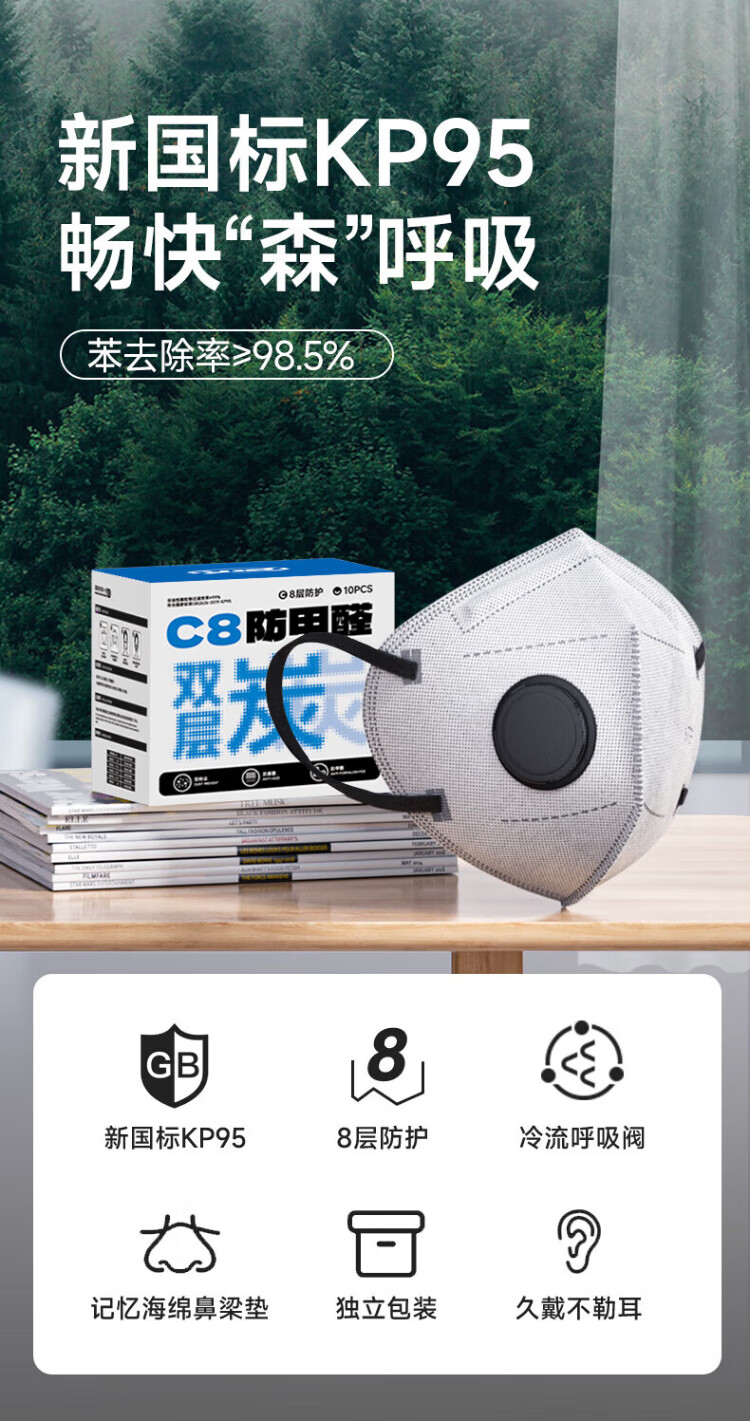 Iconi KP95 anti-formaldehyde special mask activated carbon for pregnant women, smoke smell, oil fume, industrial dust and haze, independent pack of 10 pieces