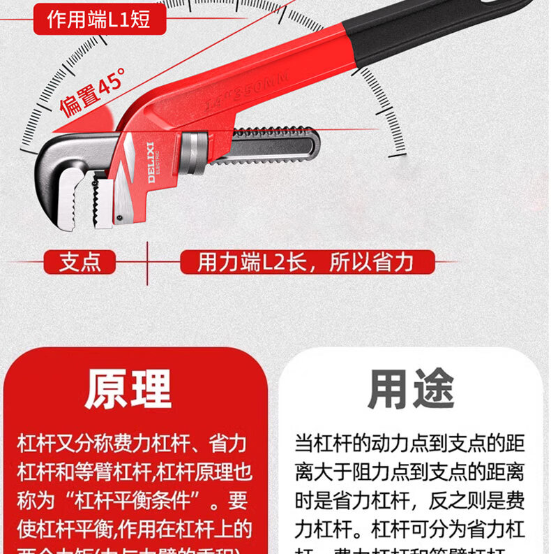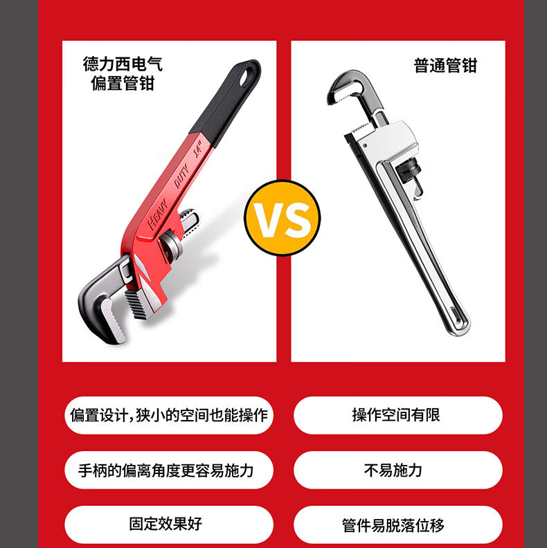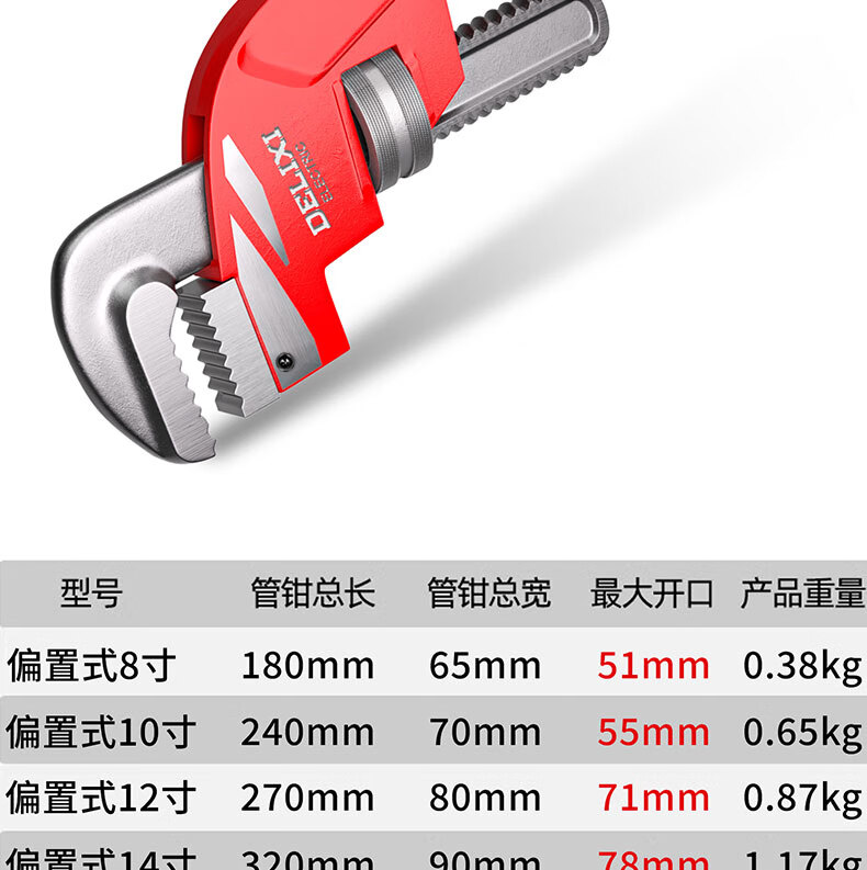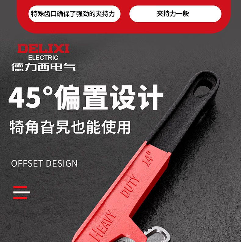 DELIXI ELECTRIC pipe wrench multi-function offset wrench pipe wrench oblique head pipe pipe wrench plumbing tool heavy-duty throat wrench 10 inches
