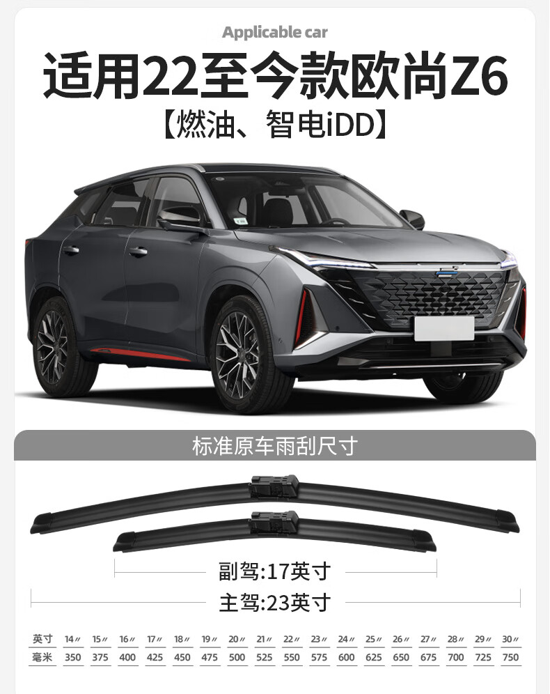 Paisu 22-25 Changan Auchan Z6 wiper blade original boneless car front wiper blade silent 23+17 squares