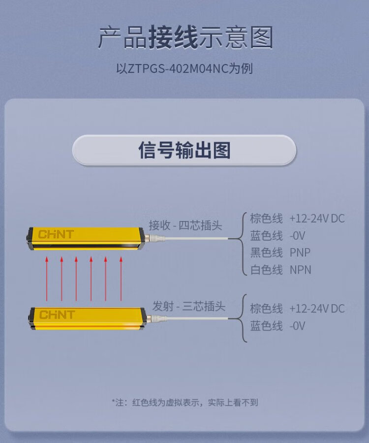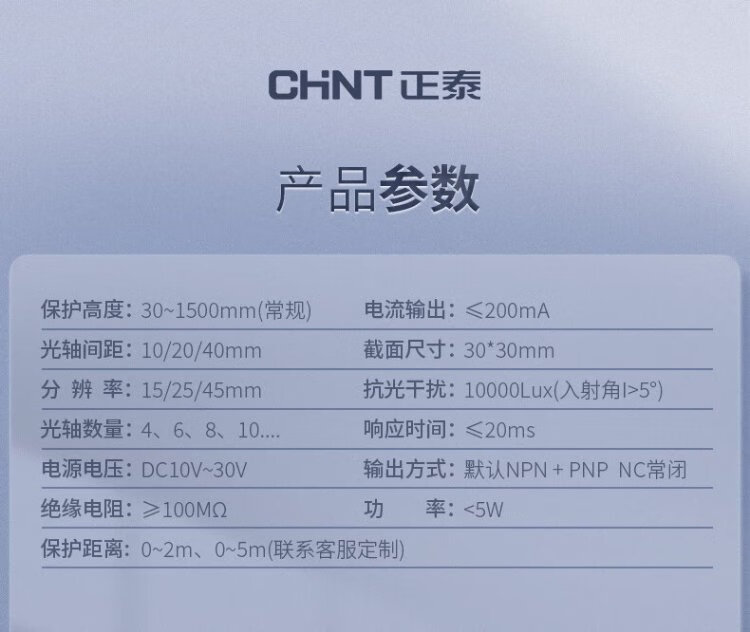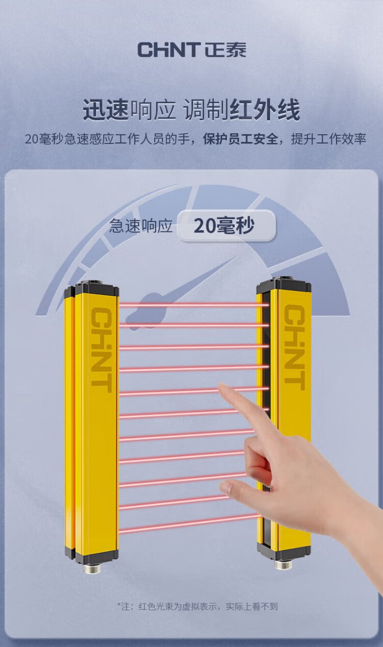 Chint (CHNT) ZTPGS-102M04NC safety grating, light control sensor, infrared through-beam sensor, punch hand guard detector, 10MM optical axis spacing detection