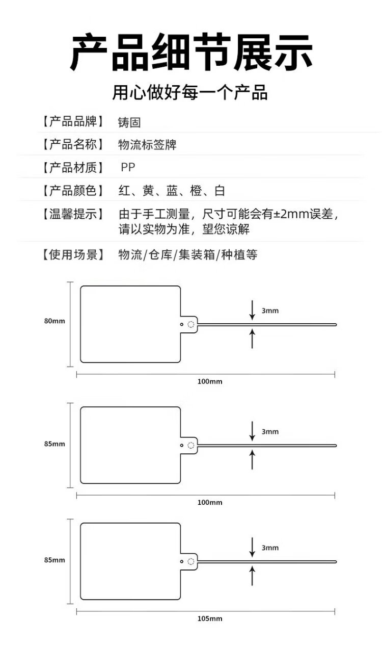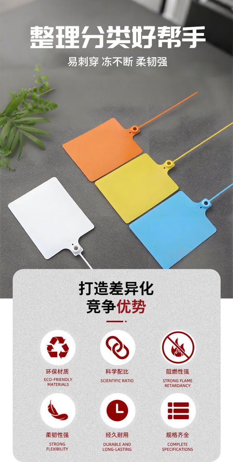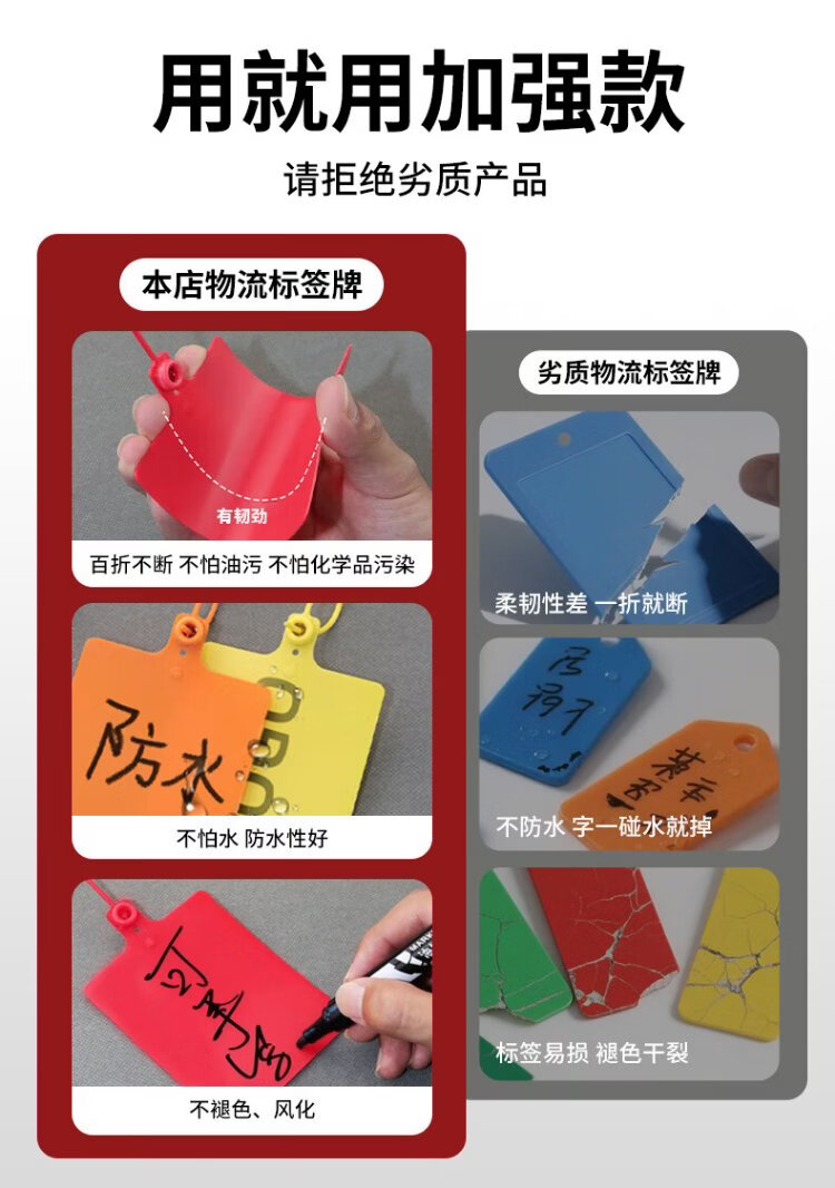 Cast solid logistics label thickened plastic tag with built-in lock core identification tag seal anti-return tie tie 100*80mm (100 strips) blue