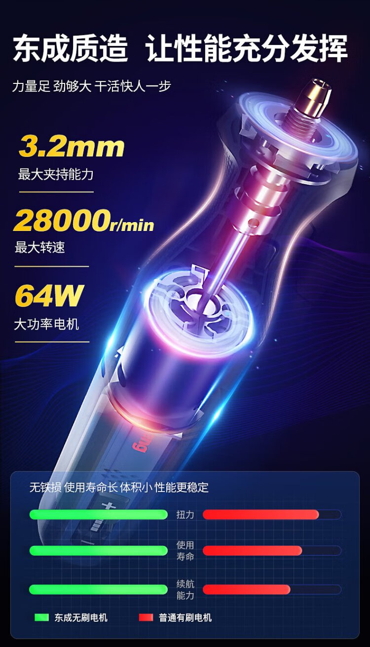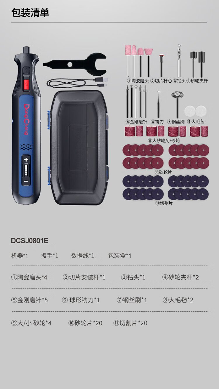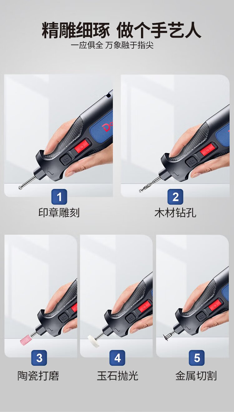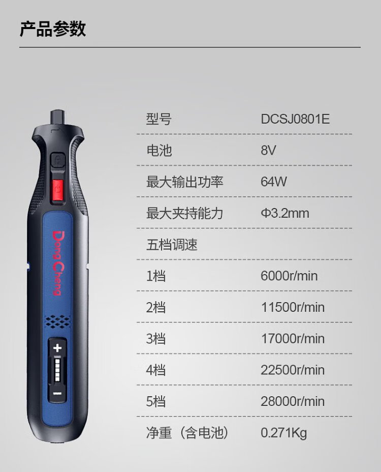 Dongcheng 8V electric grinder small jade carving and polishing machine grinder lithium electric grinding pen mini electric drill DCSJ0801E