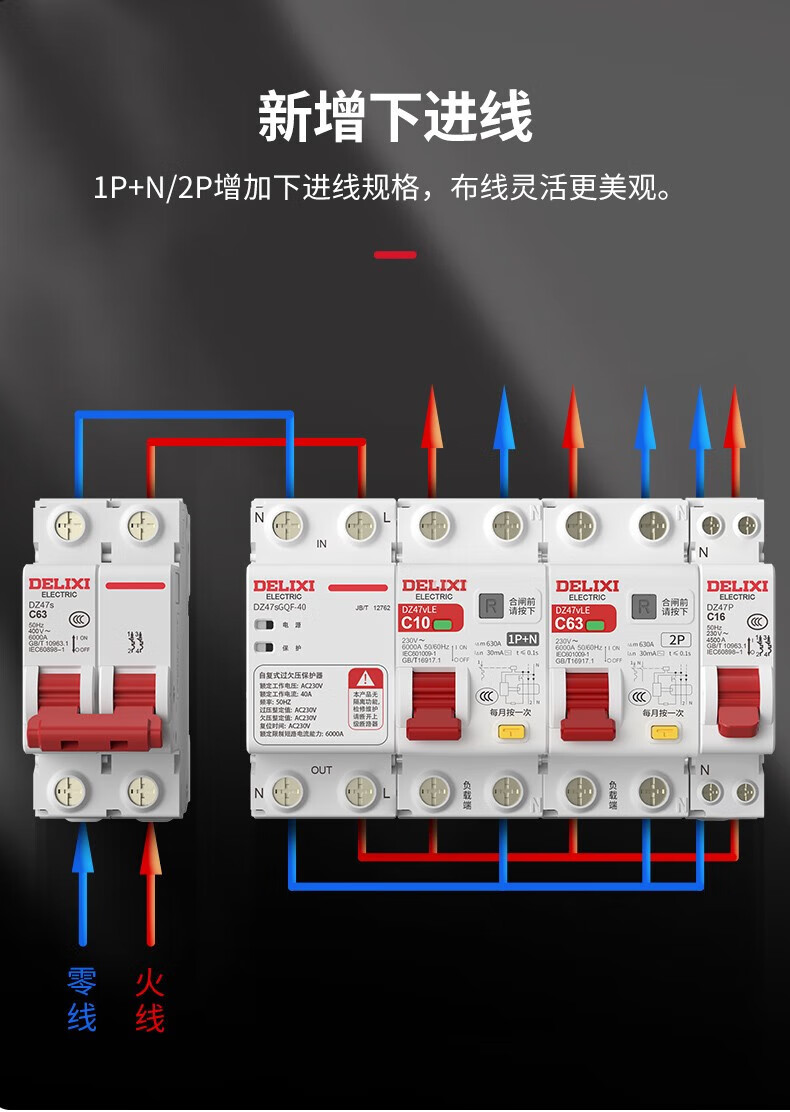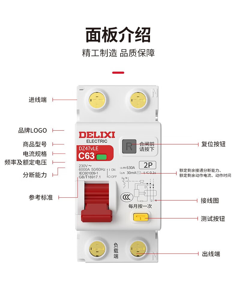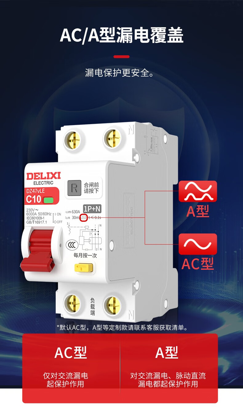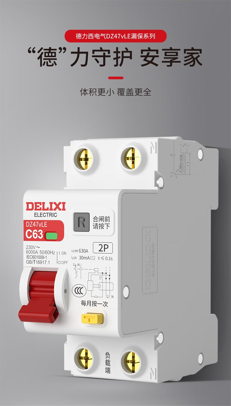 DELIXI ELECTRIC leakage protector circuit breaker with leakage switch DZ47vLE DZ47vLE 2P C25