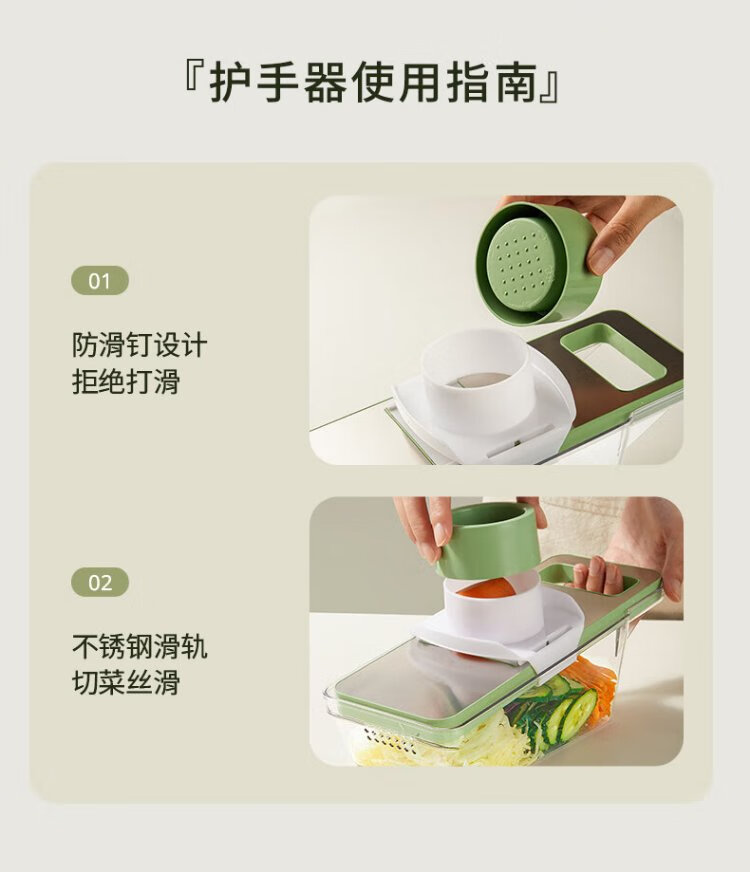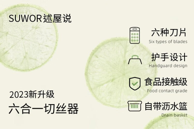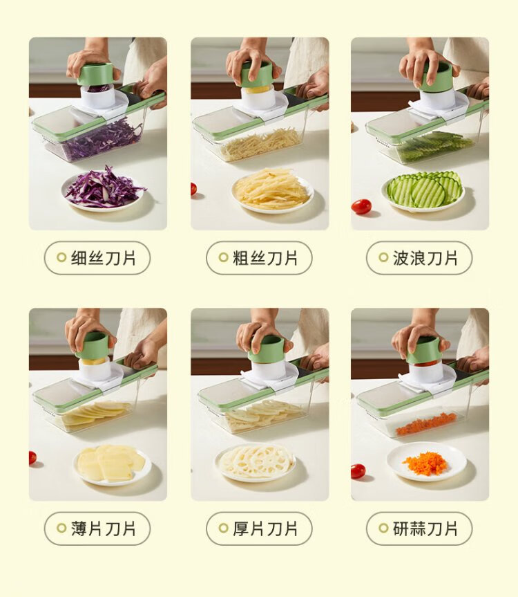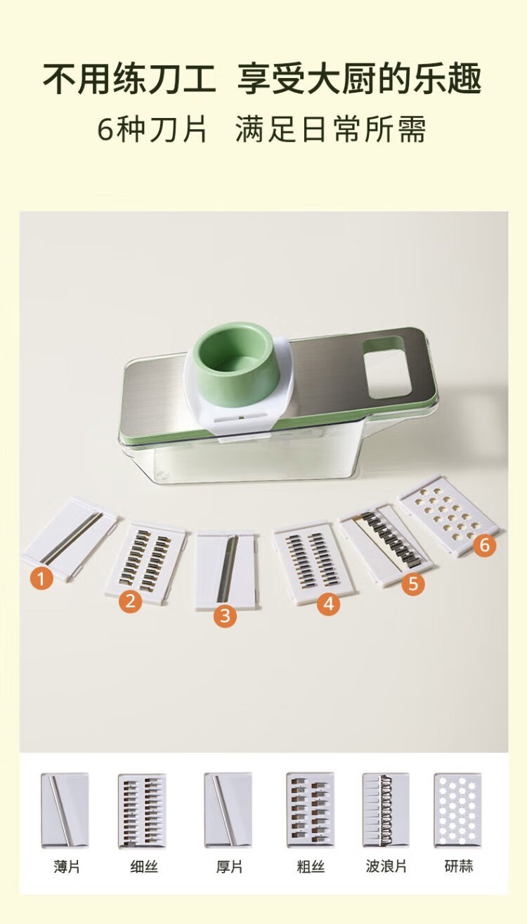 Shuwushuo multifunctional potato grater, vegetable cutting tool, shredding tool, grater, free six blades + hand guard