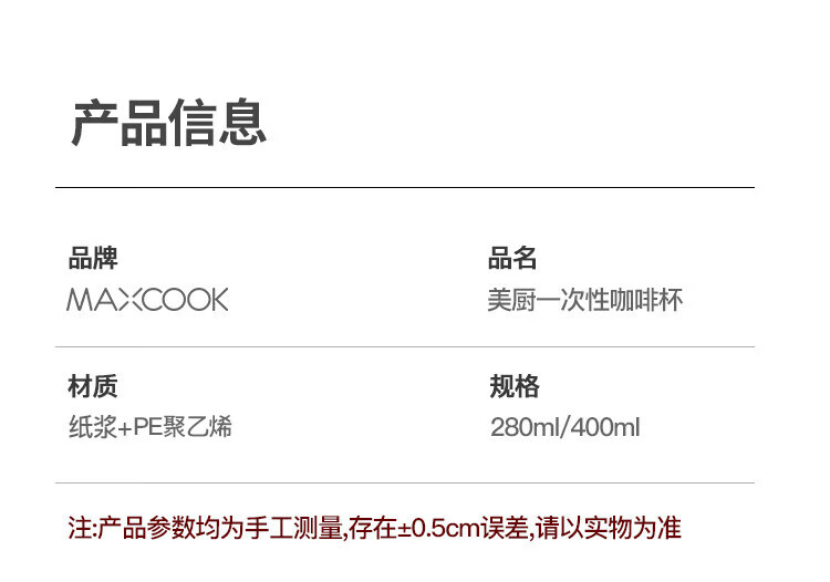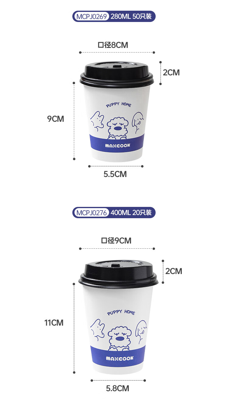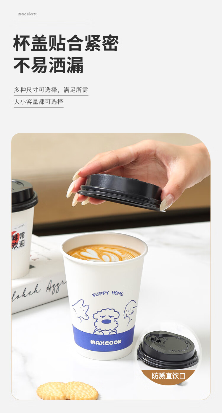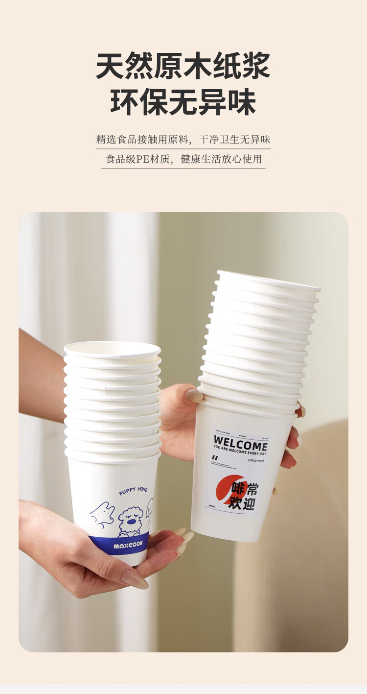 MAXCOOK paper cup disposable cup coffee cup office home water cup milk tea cup 400ml with lid 20 pieces MCPJ0276
