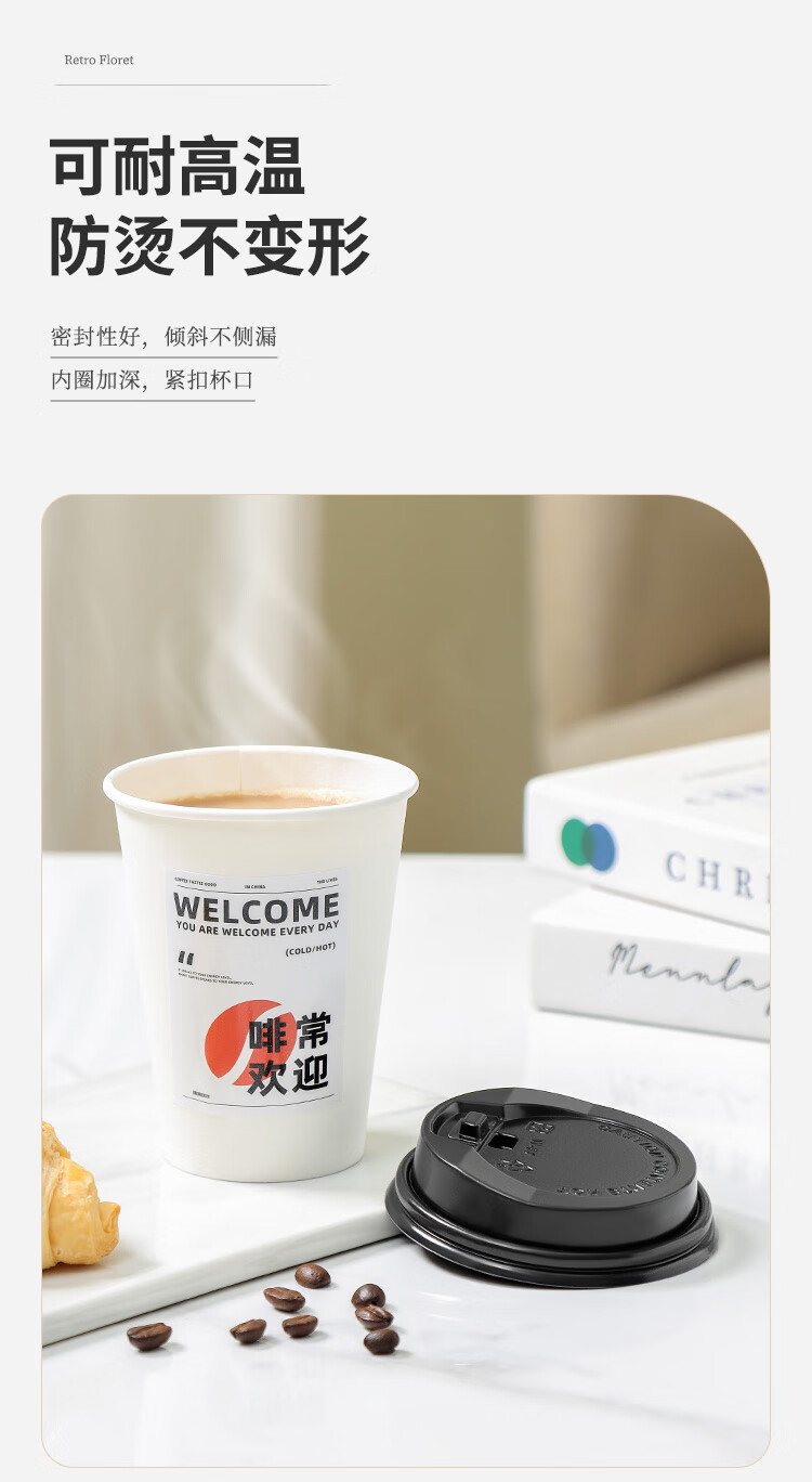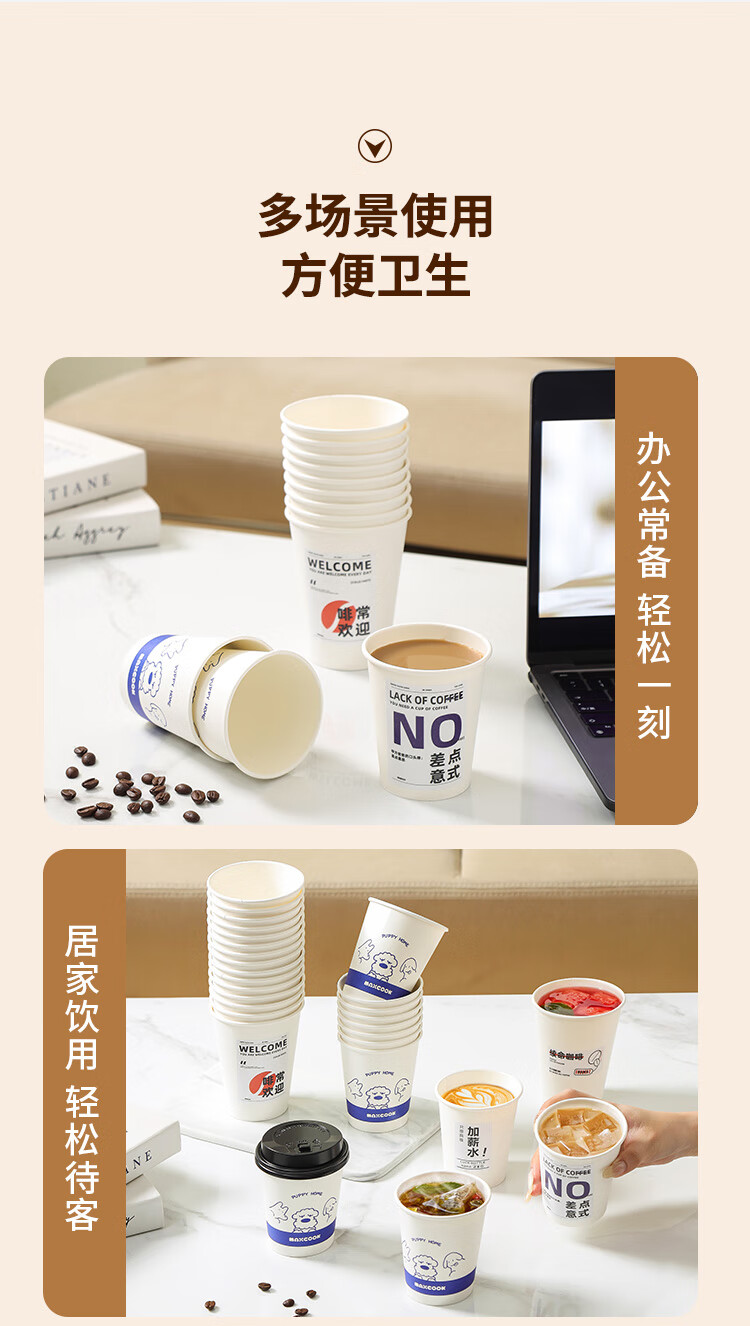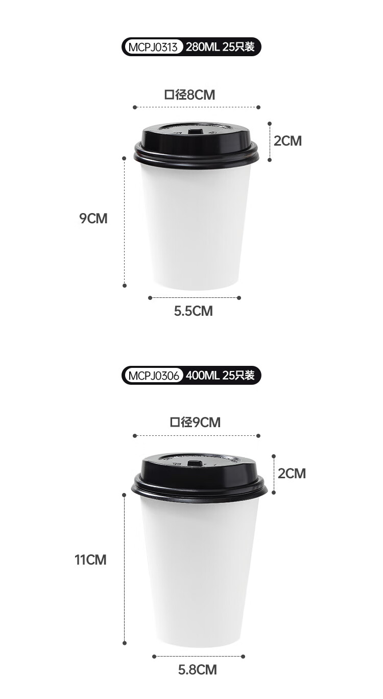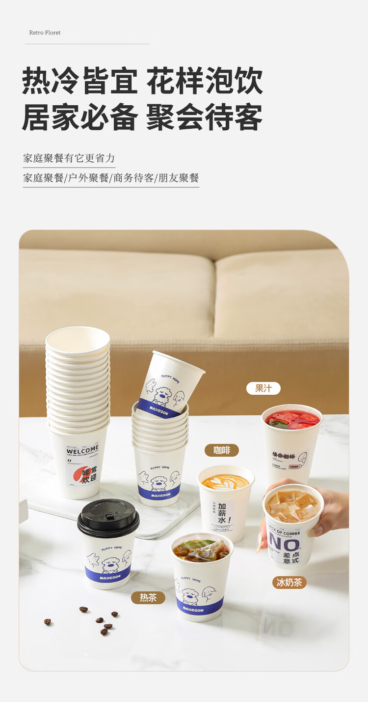 MAXCOOK paper cup disposable cup coffee cup office home water cup milk tea cup 400ml with lid 20 pieces MCPJ0276