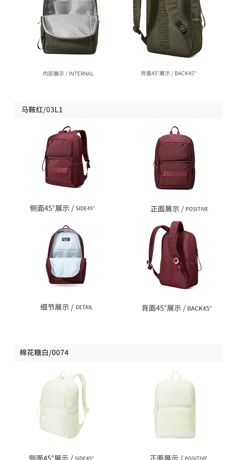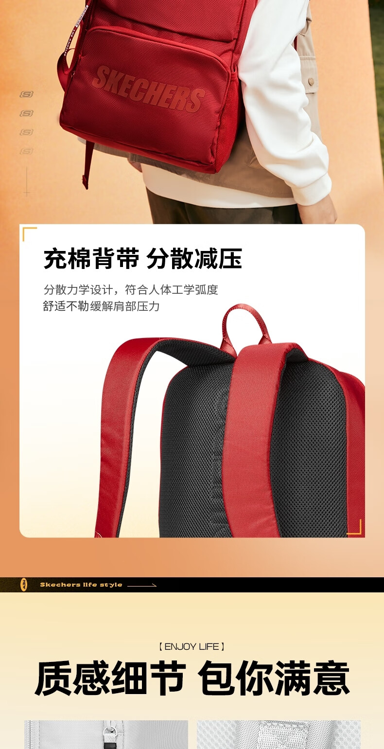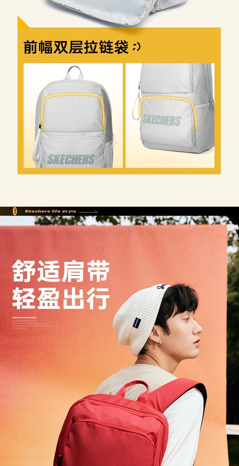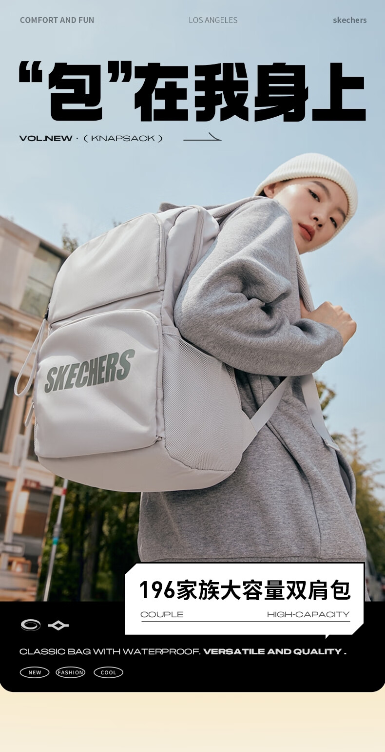 Skechers New Year gift for men and women, same style backpack, extra large capacity school bag, versatile student backpack, computer bag L320U196