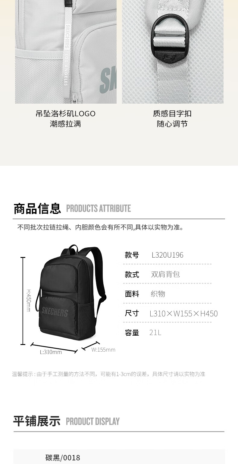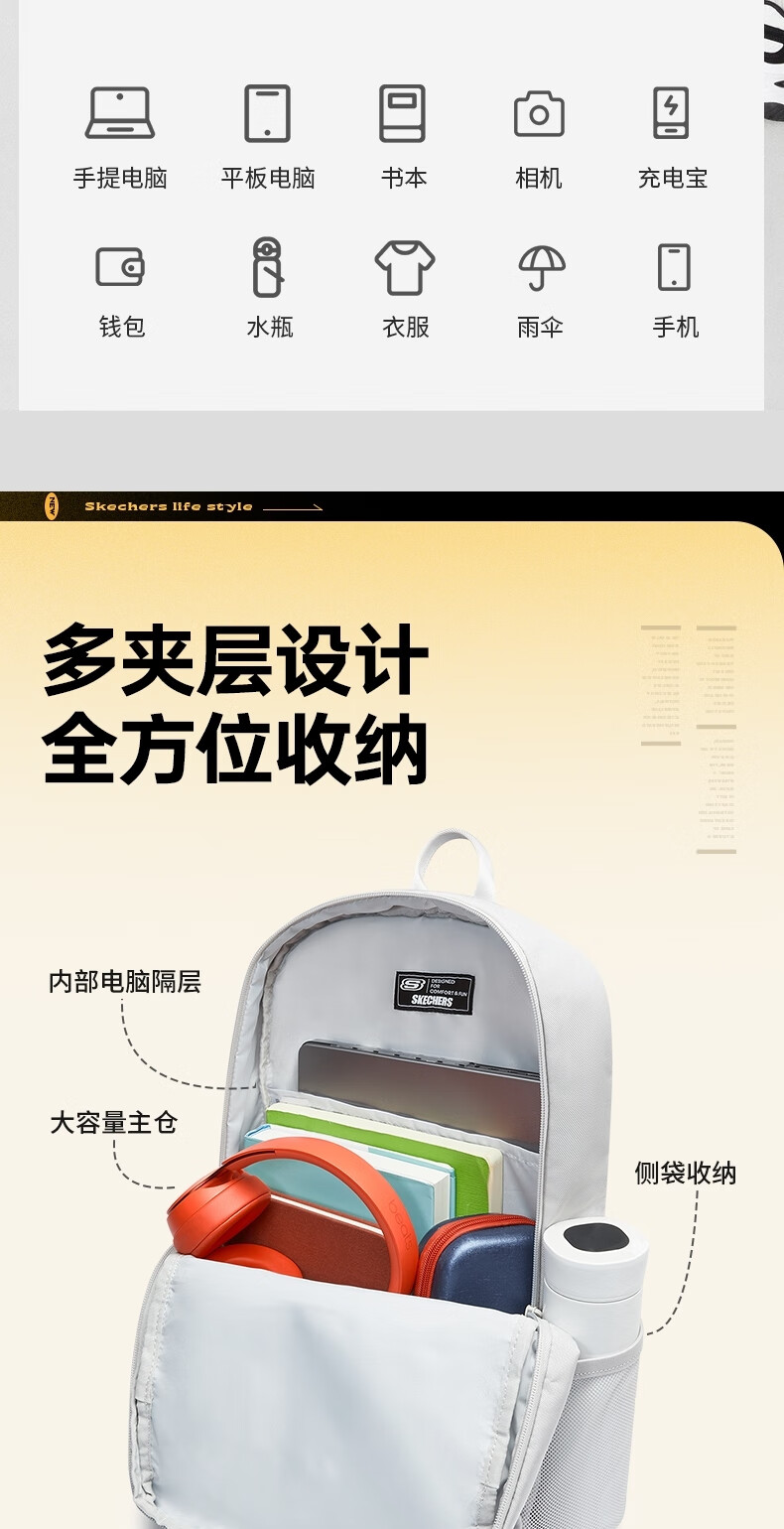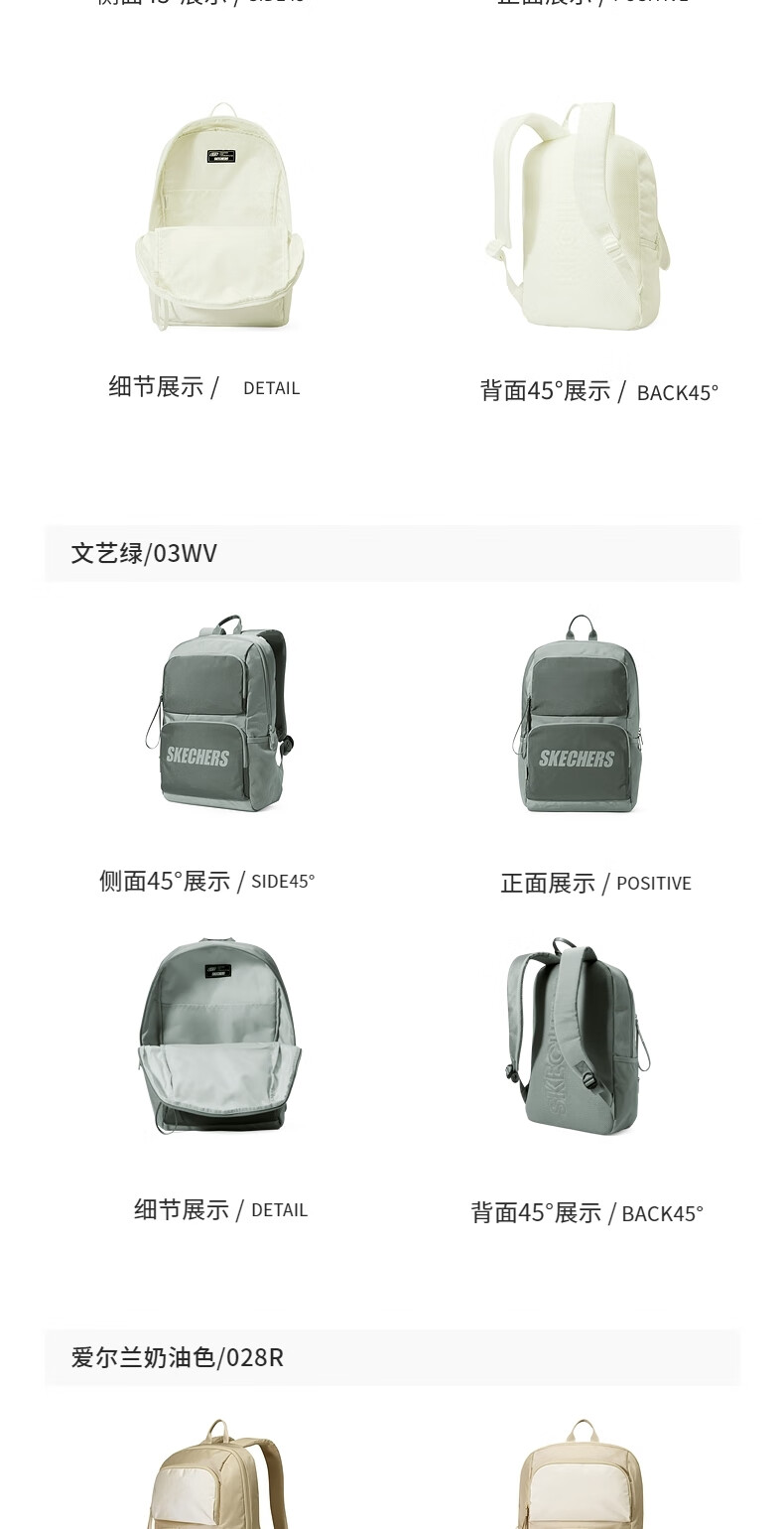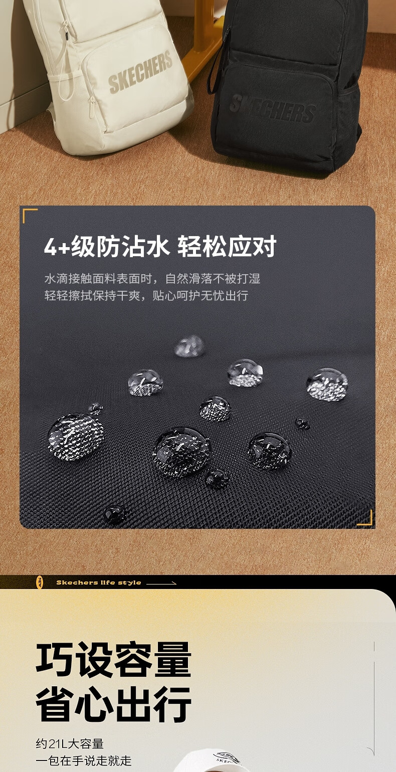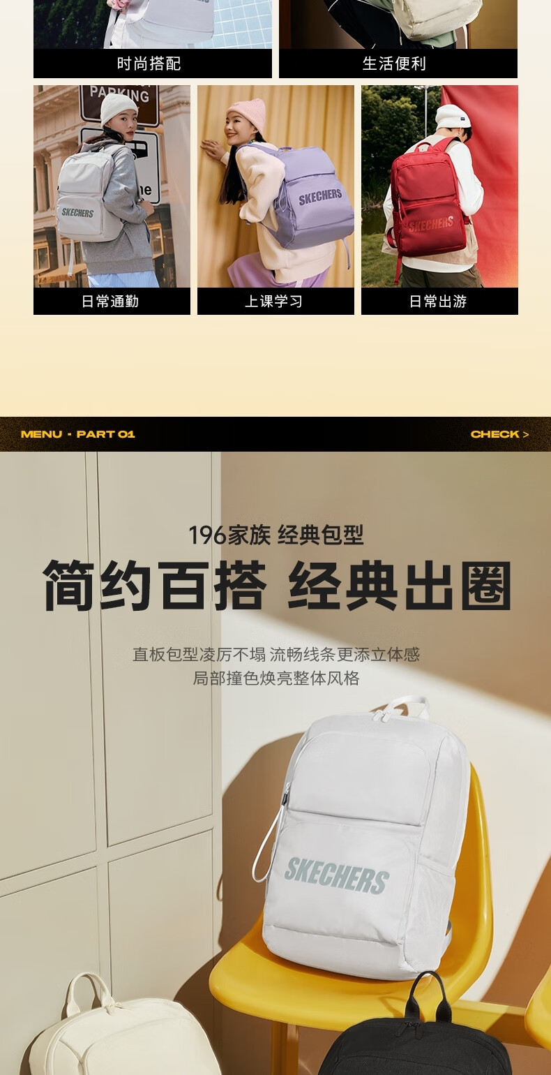 Skechers New Year gift for men and women, same style backpack, extra large capacity school bag, versatile student backpack, computer bag L320U196