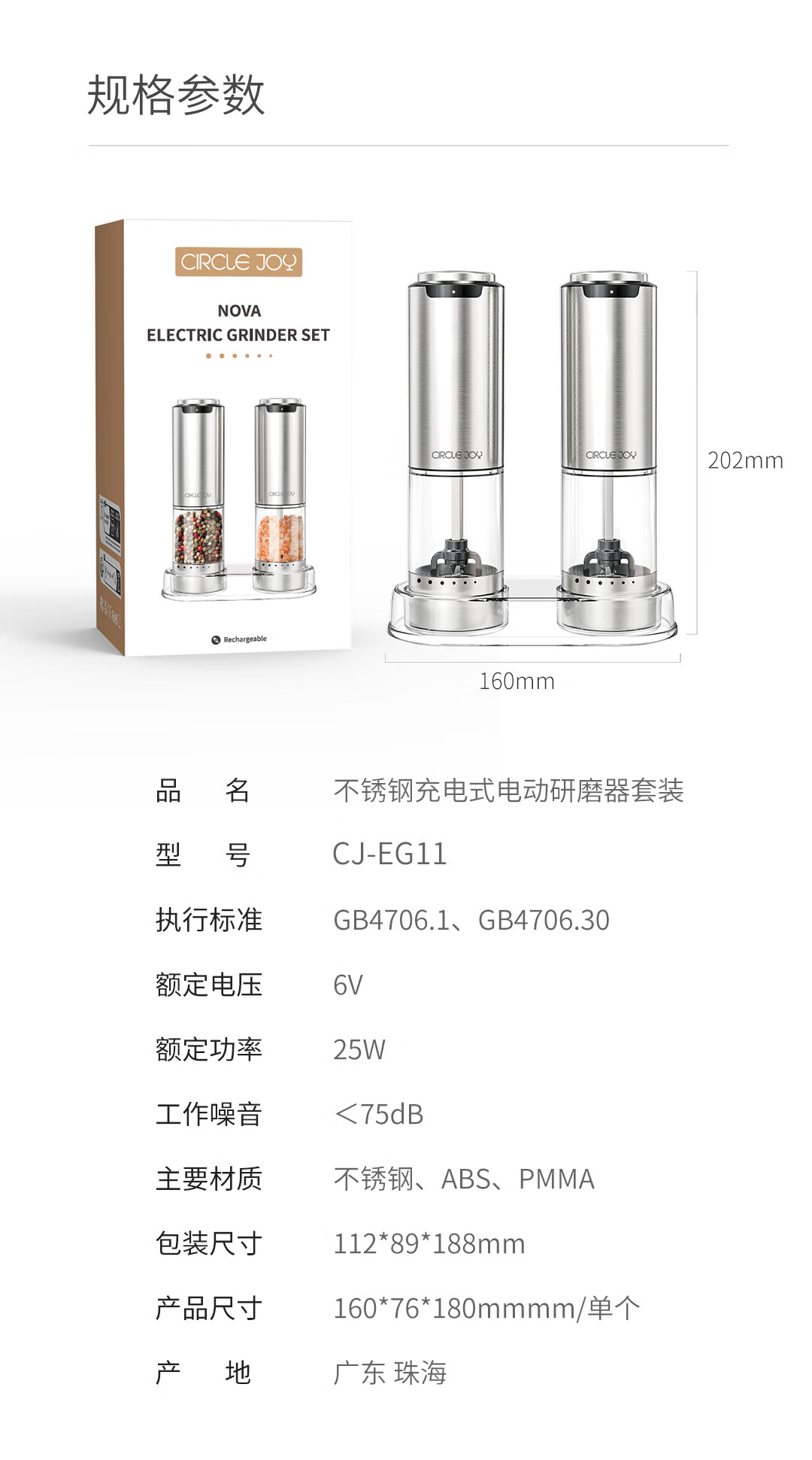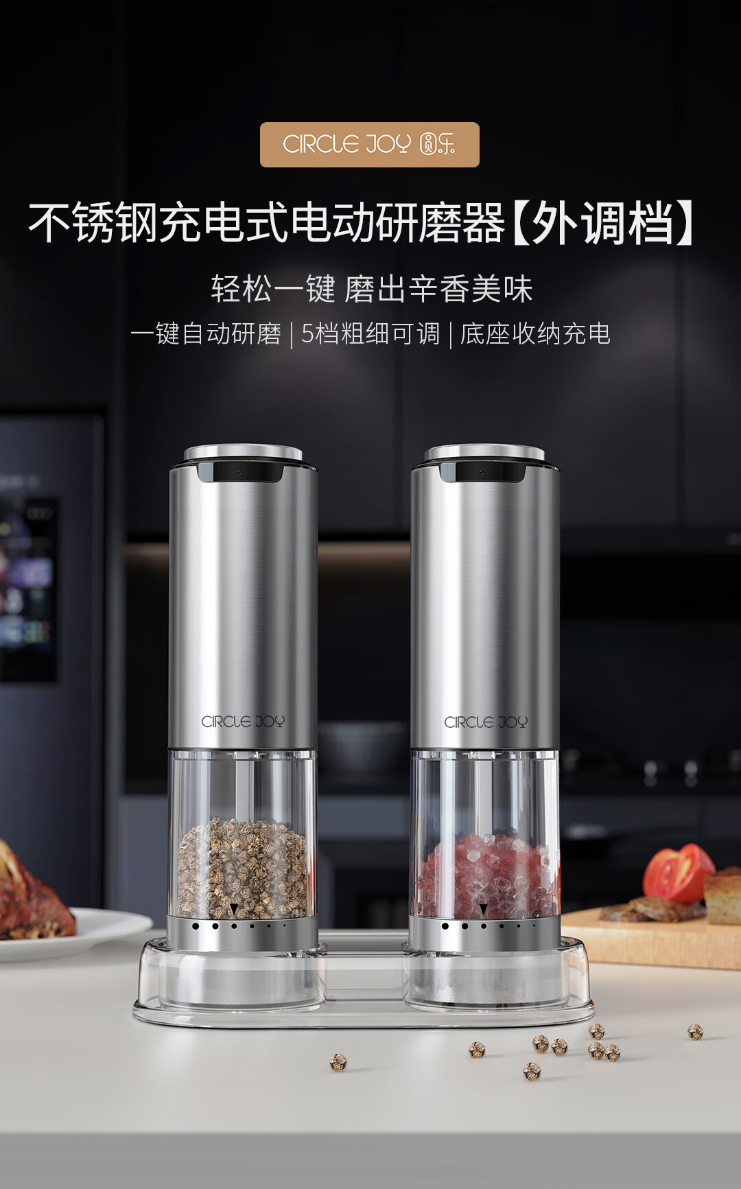 Circle Joy Electric Pepper Grinder Rechargeable Household Pepper Black Pepper Sea Salt Grinding Bottle Seasoning Bottle Jar Single Pack