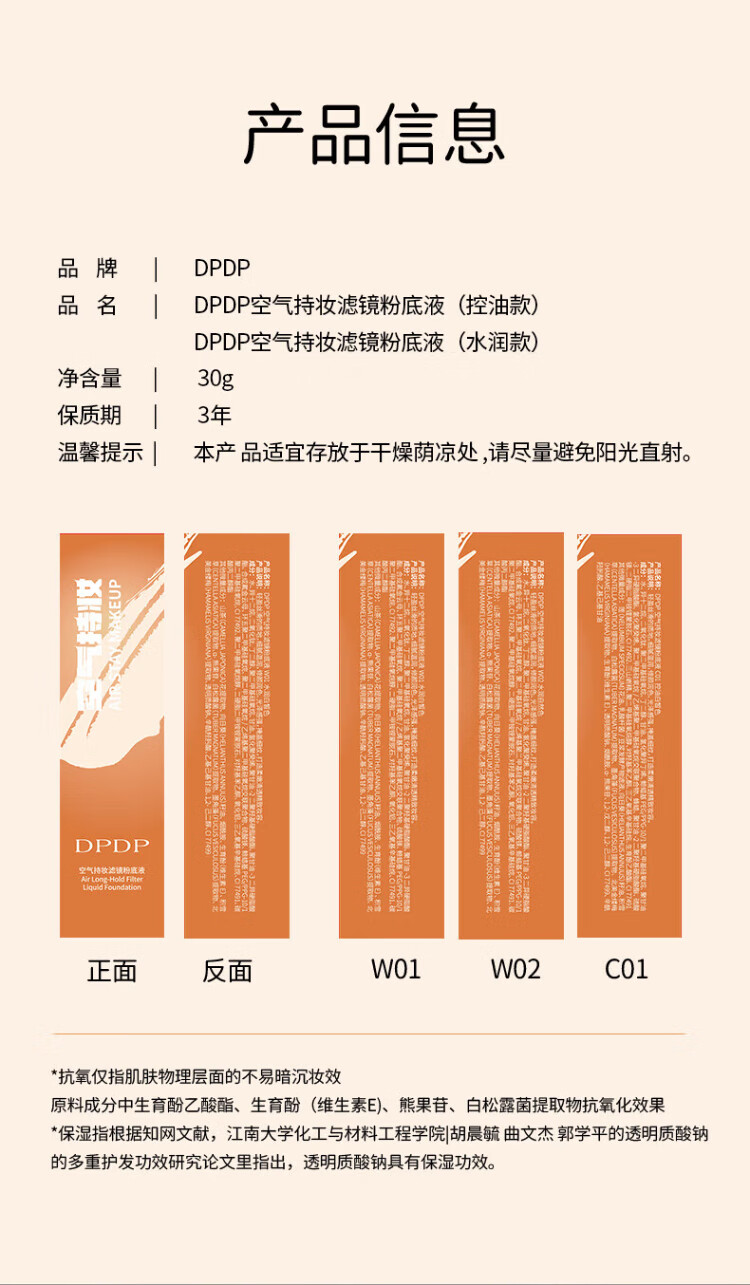 DPDP Air Lasting Liquid Foundation W01# Dry Skin White Color 30g Long-lasting Concealer as a New Year's Day gift for your girlfriend