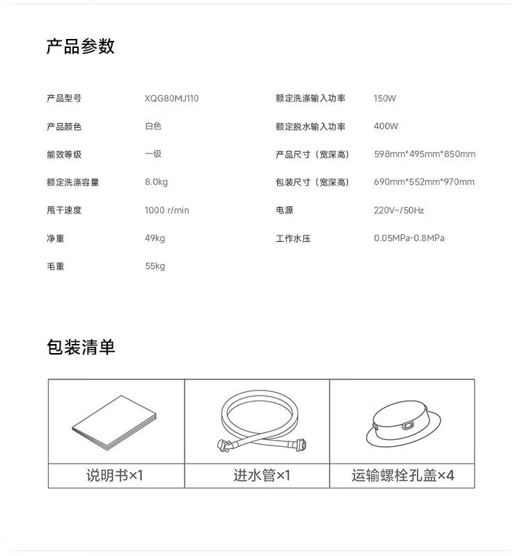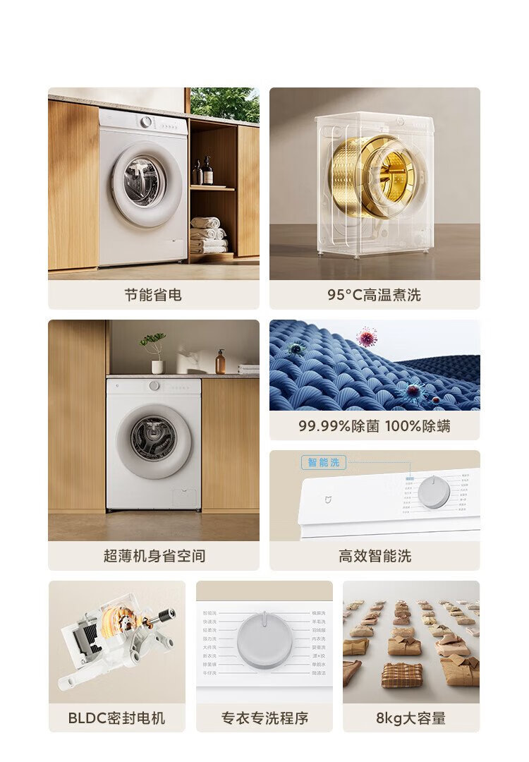 Mijia Xiaomi drum washing machine fully automatic 8 kg wool washing ultra-thin body smart washing first-level energy efficiency rental state subsidy XQG80MJ110