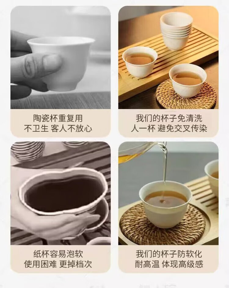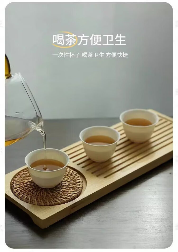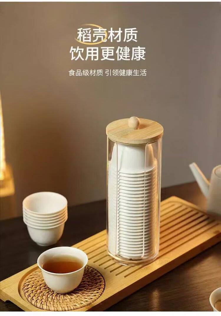 PAKCHOICE disposable kung fu tea cup 60ml degradable rice husk tea cup high-end heat-resistant tea cup 192 pieces + cup holder