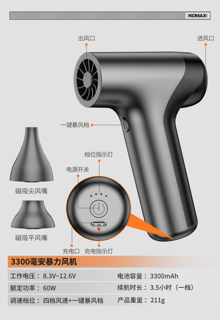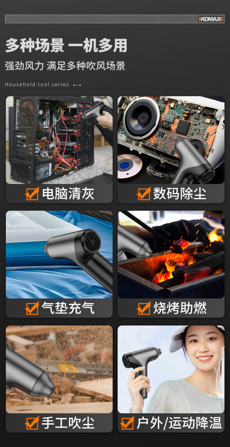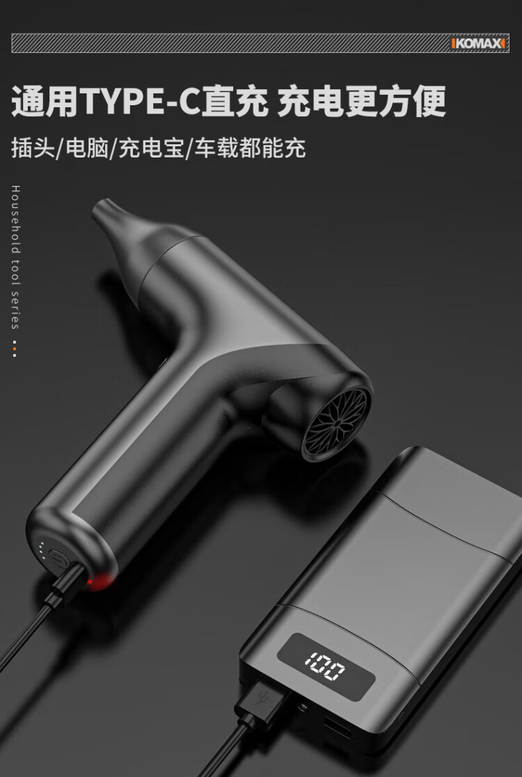 Komax violent fan handheld turbine hair dryer high-speed wireless dust removal and blowing snow powerful small blower lithium electric blower