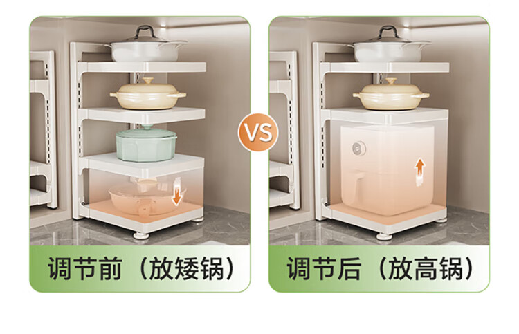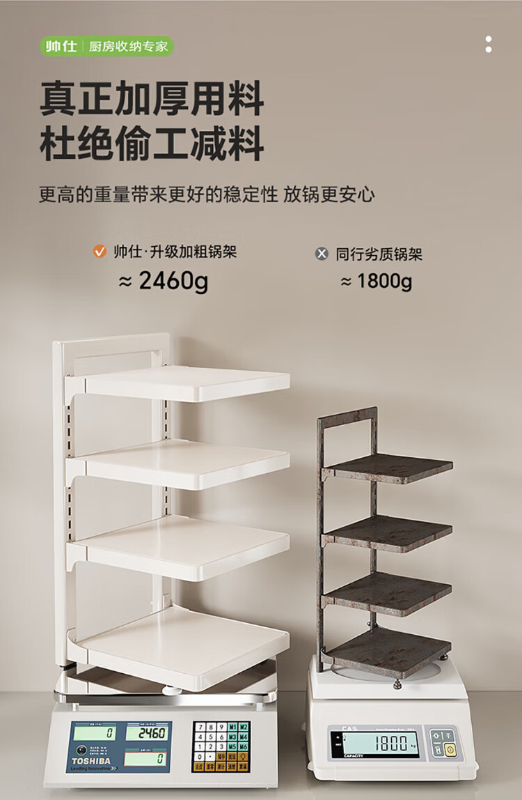 Shuaishi (shuaishi) kitchen rack and pot rack specially designed to store pots and storage under the sink rack in the cabinet multi-layer pot rack 4 layers white