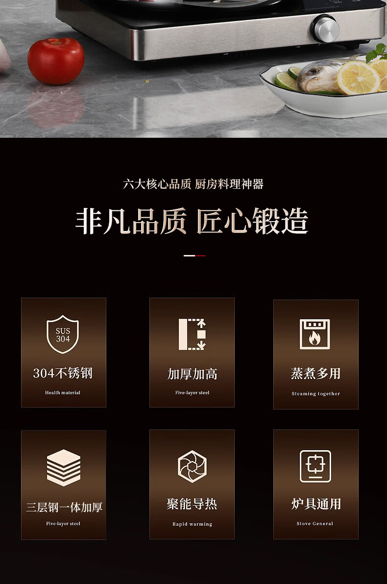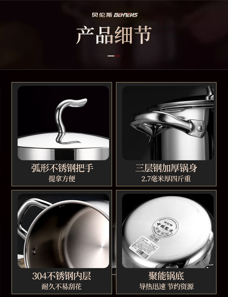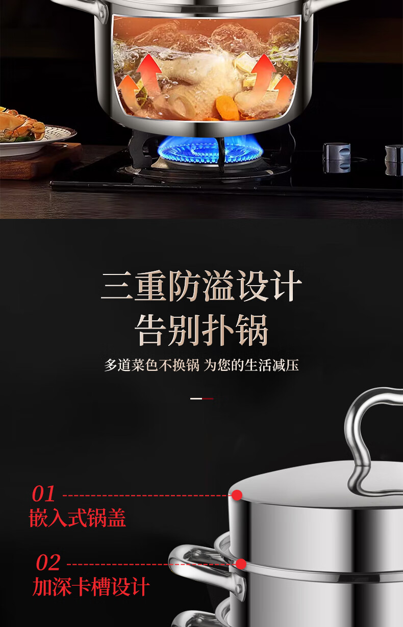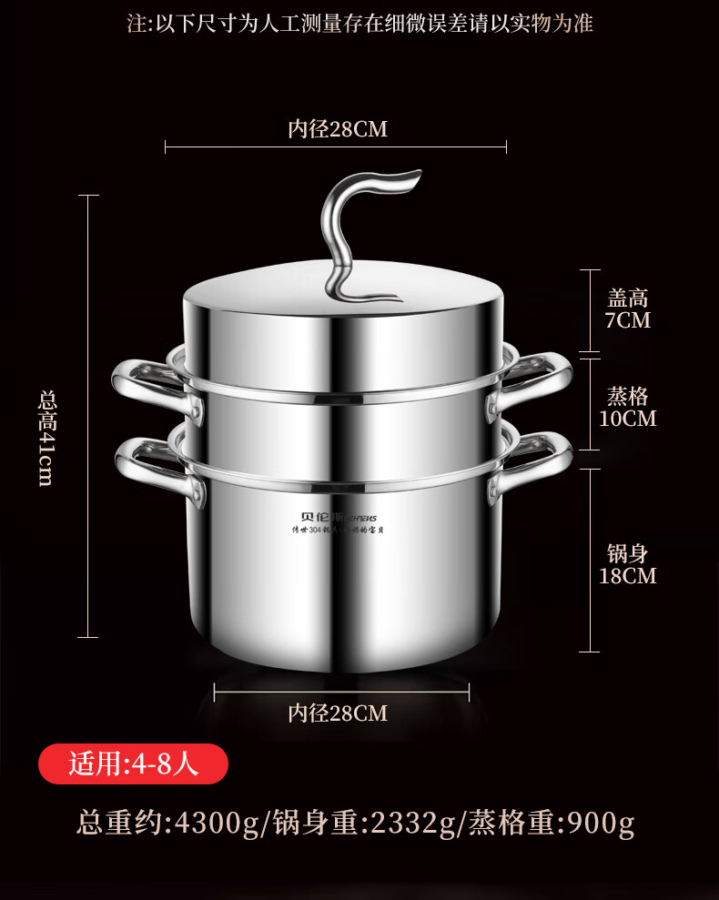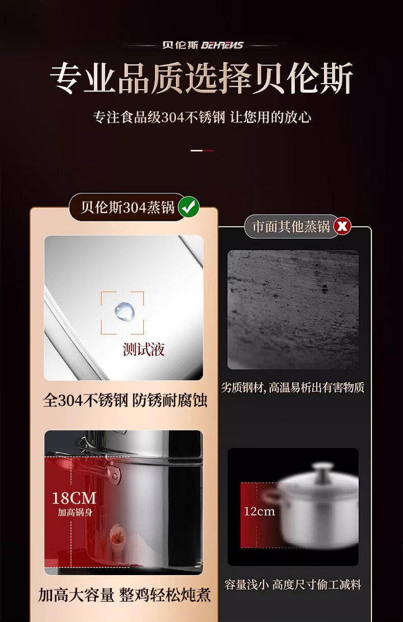 Behrens 304 stainless steel steamer gas stove induction cooker steamed buns steamer home steaming dual-purpose thickened three layers