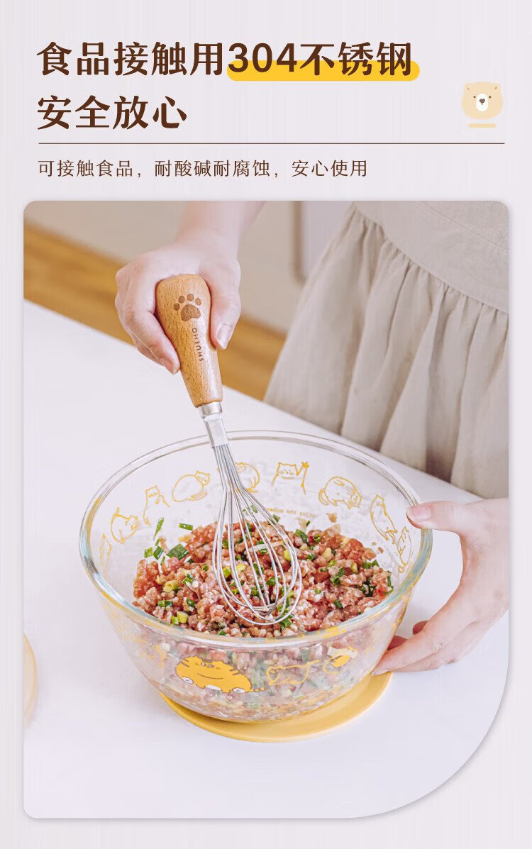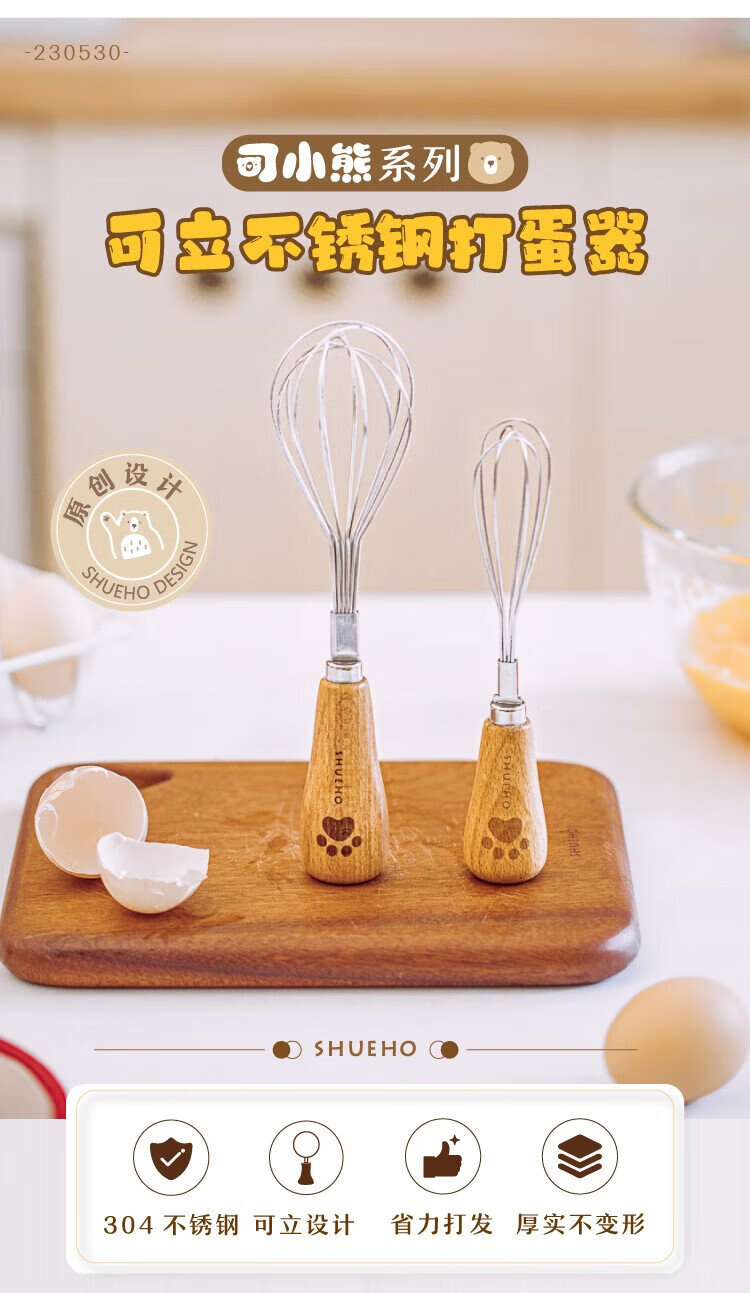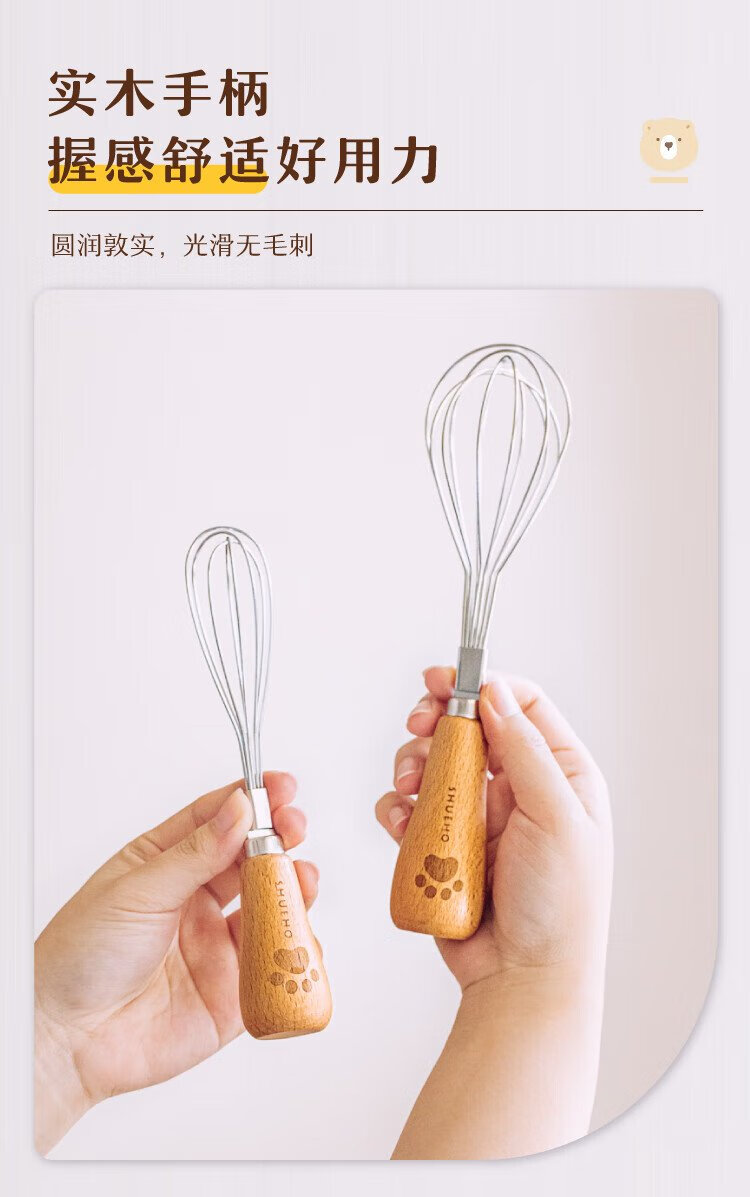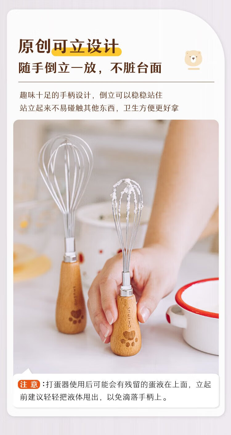 Shuke Bear Egg Beater Mini Standable Manual Egg Separator Mixing Stick Small Egg Beater to Pump Baby Food Supplement