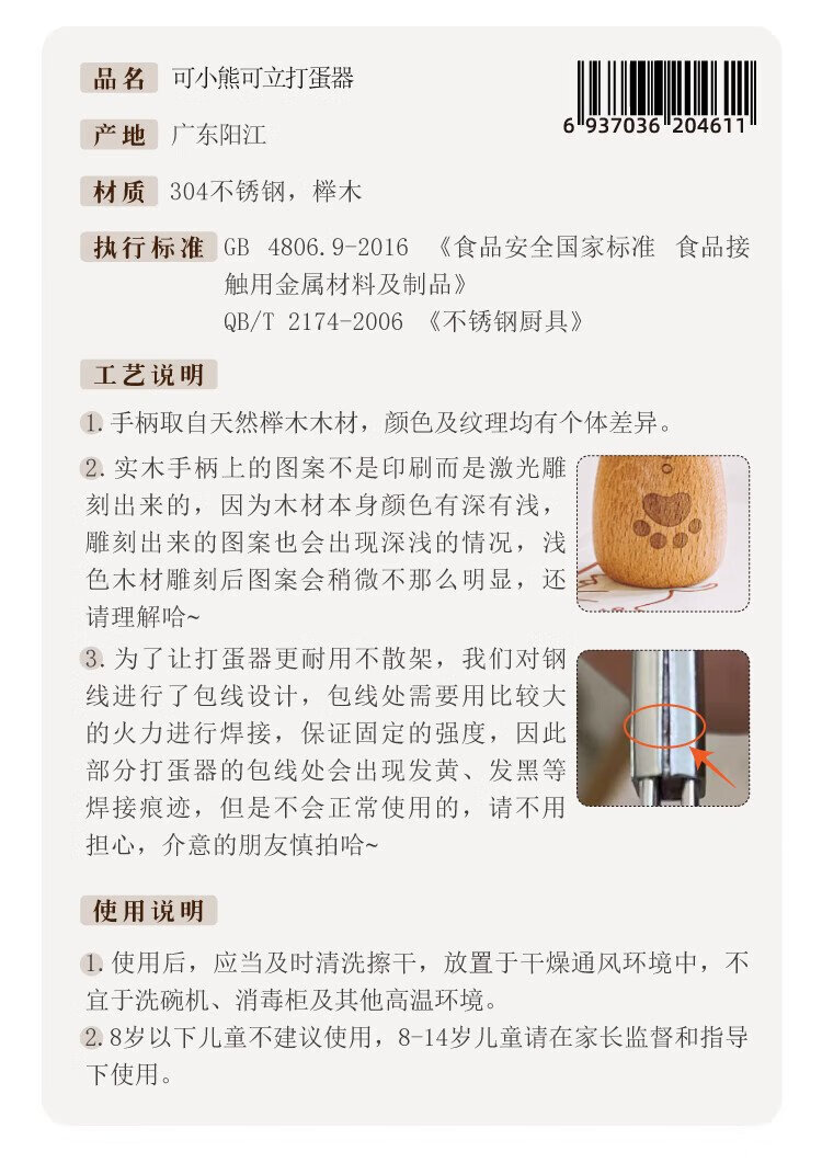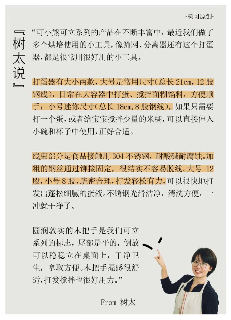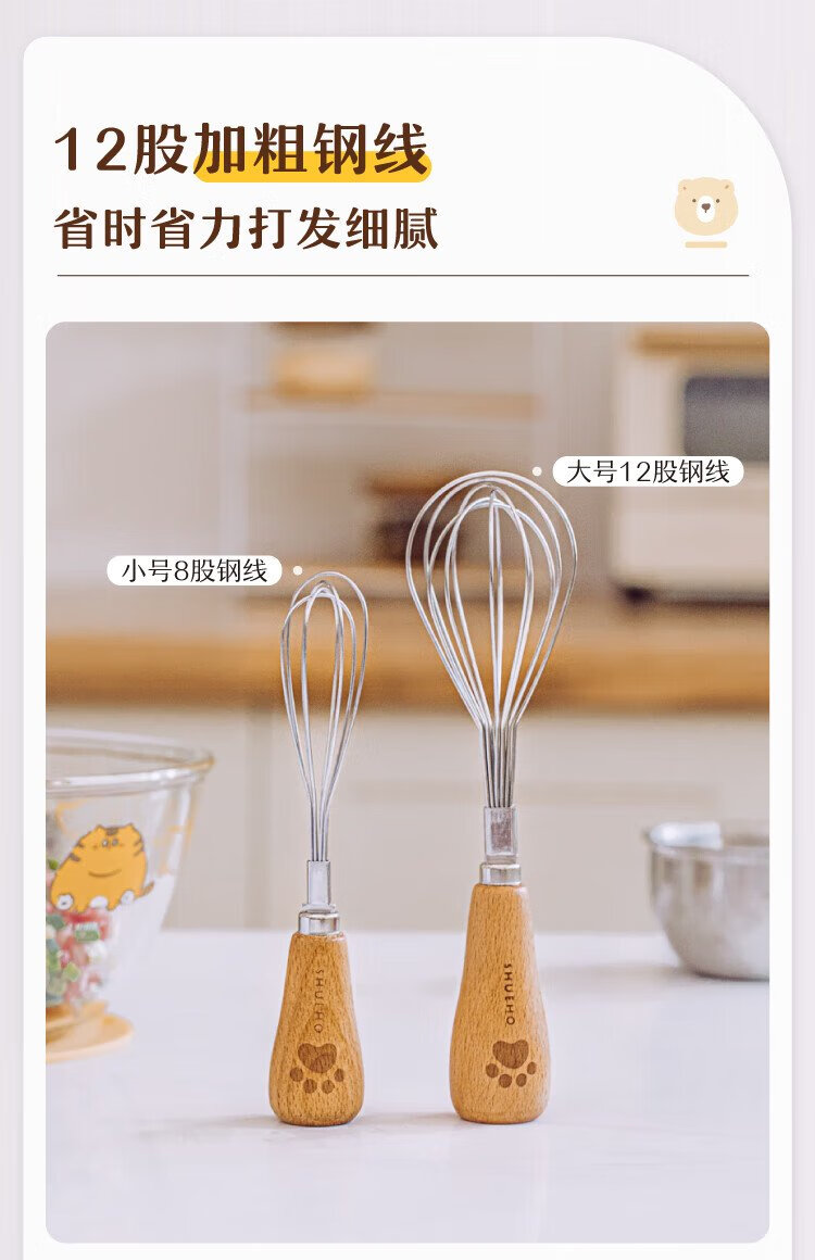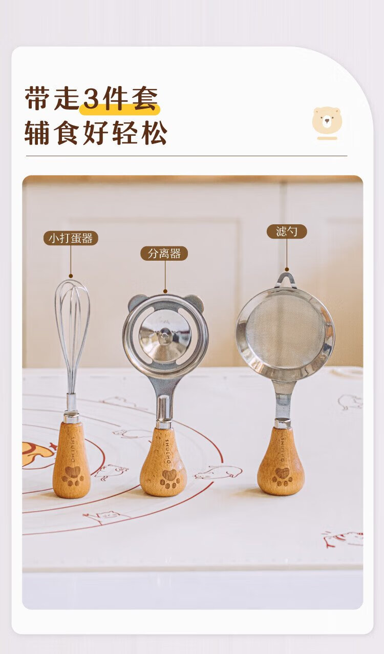 Shuke Bear Egg Beater Mini Standable Manual Egg Separator Mixing Stick Small Egg Beater to Pump Baby Food Supplement