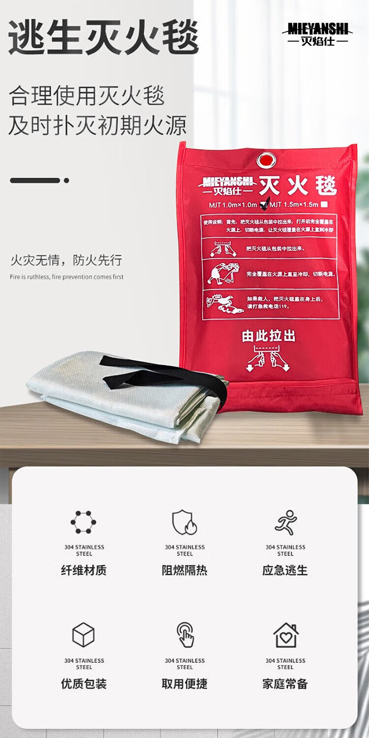 Flame Extinguishing Blanket Fiberglass Fire Blanket Home Kitchen Canteen Fire Extinguisher Matching Escape Blanket 1.5M 1 Bag