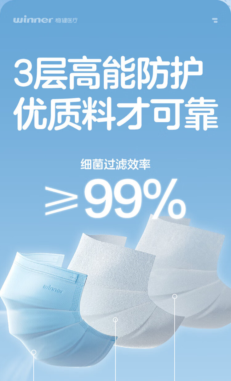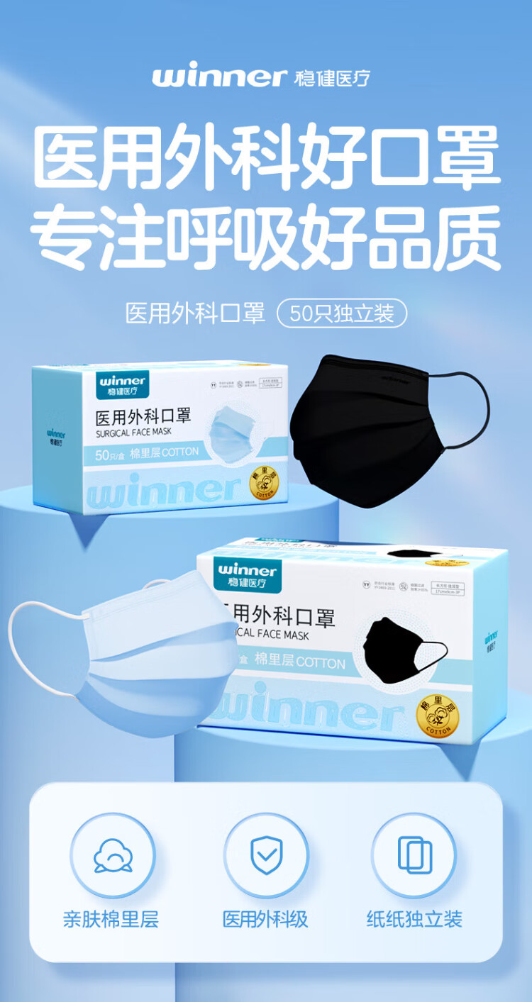 Robust medical surgical masks, individually packaged, 50 pieces, three-layer protective cotton inner layer, skin-friendly, breathable, dust-proof and pollen-proof