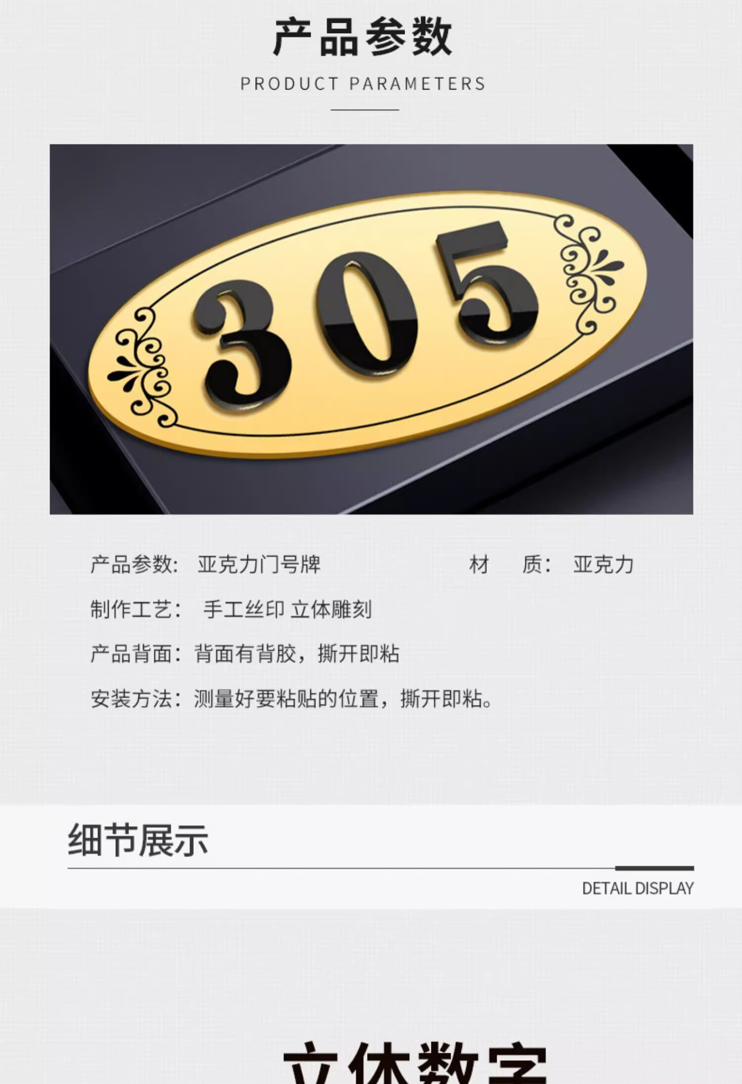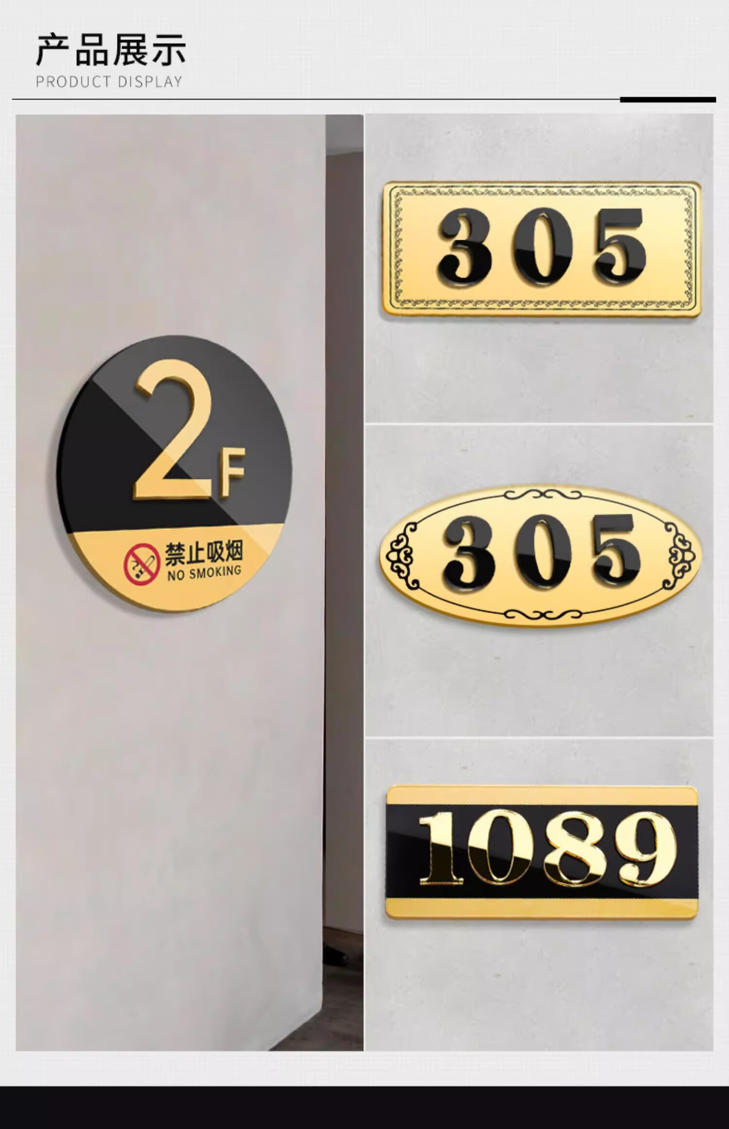 Yinchuanhui three-dimensional number plate acrylic door plate customized digital signage high-end residential room number hotel room number