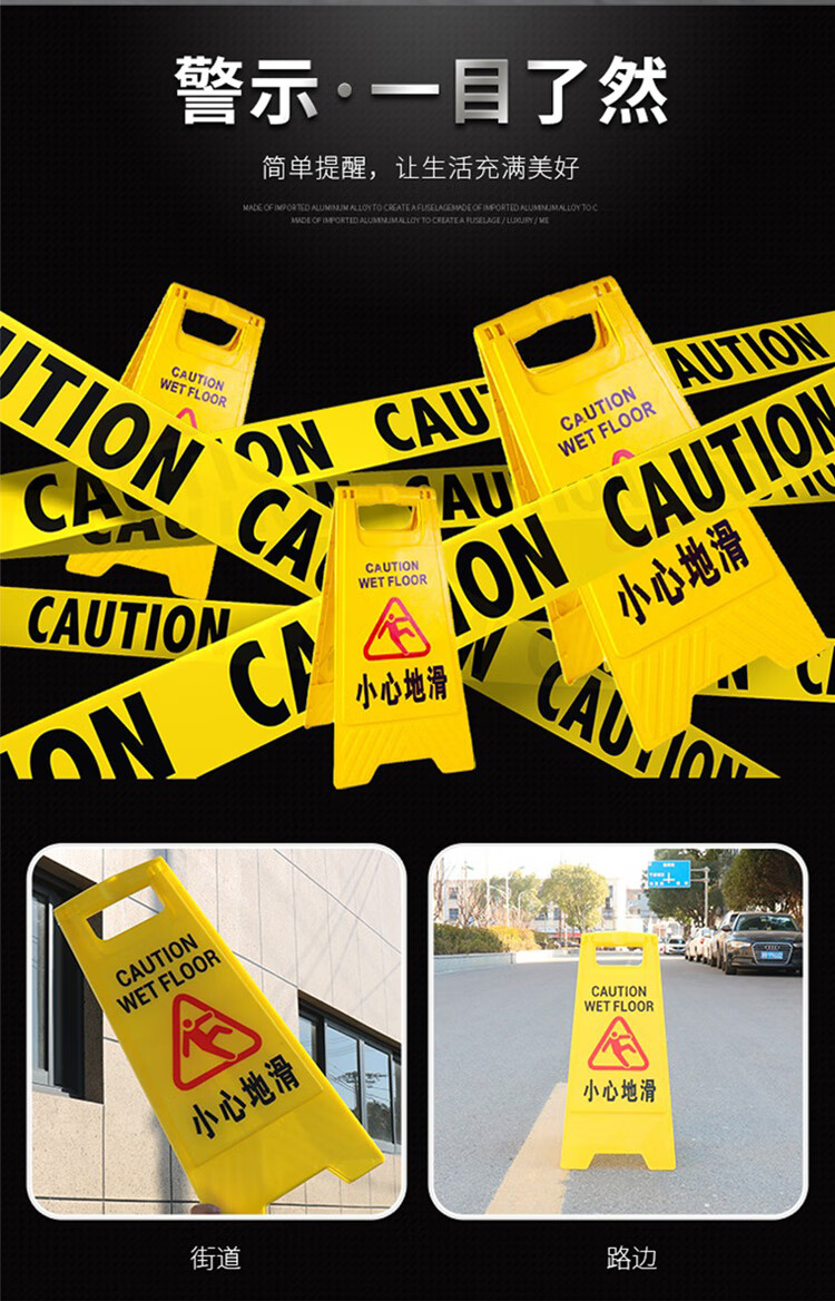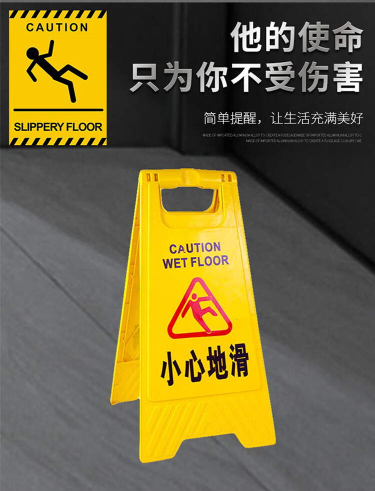 Yinchuanhui A-shaped sign, be careful to slip, herringbone warning sign, folding sign, anti-slip sign for stairs, 20*30*60CM plastic sign