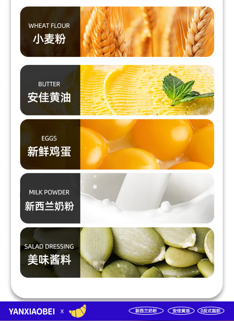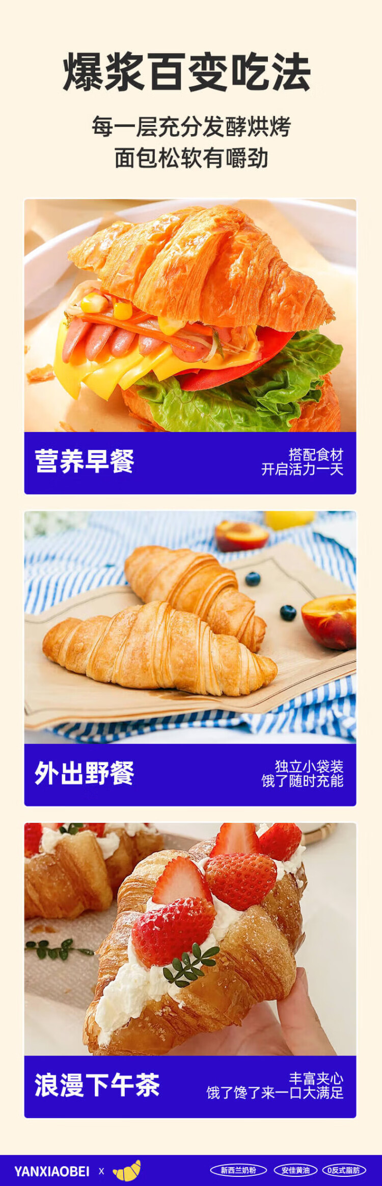 Yan Xiaobei's croissant sandwich bread breakfast hand-pulled bread meal replacement casual snack croissant mixed flavors 1000g