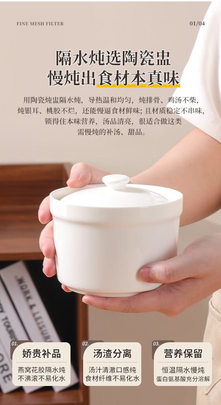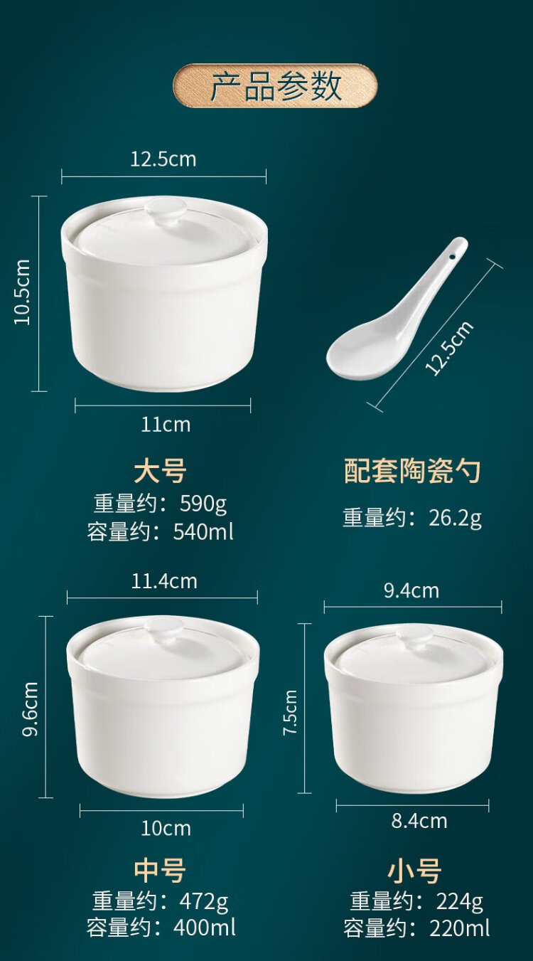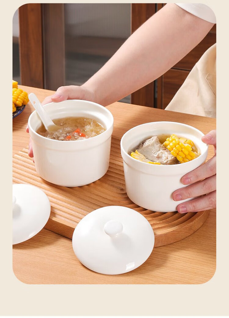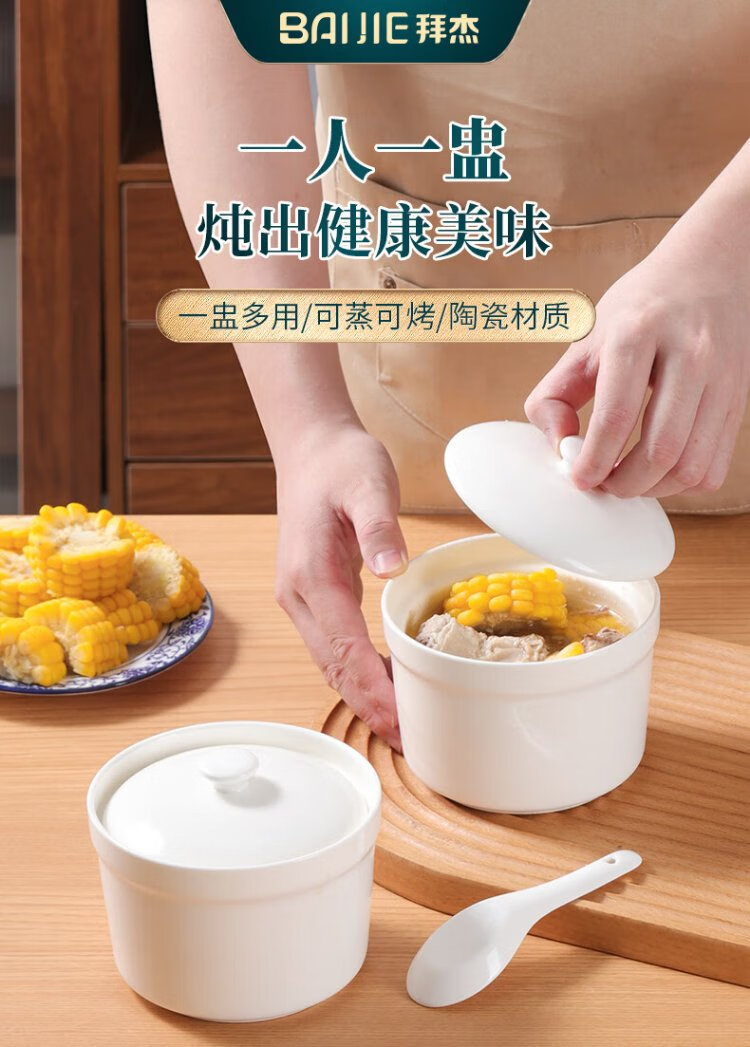 Baijie stew pot ceramic soup bowl water-proof inner pot steamed egg bowl lard porridge bird's nest cup pot tableware with lid spoon medium 400ml