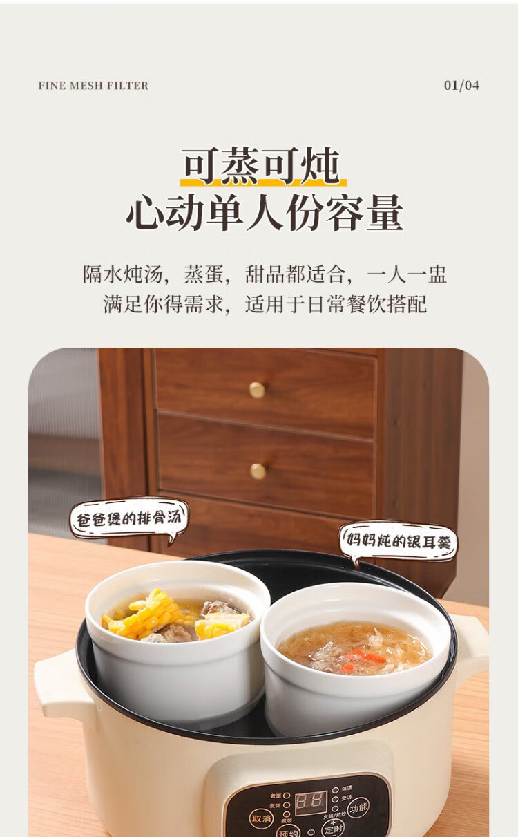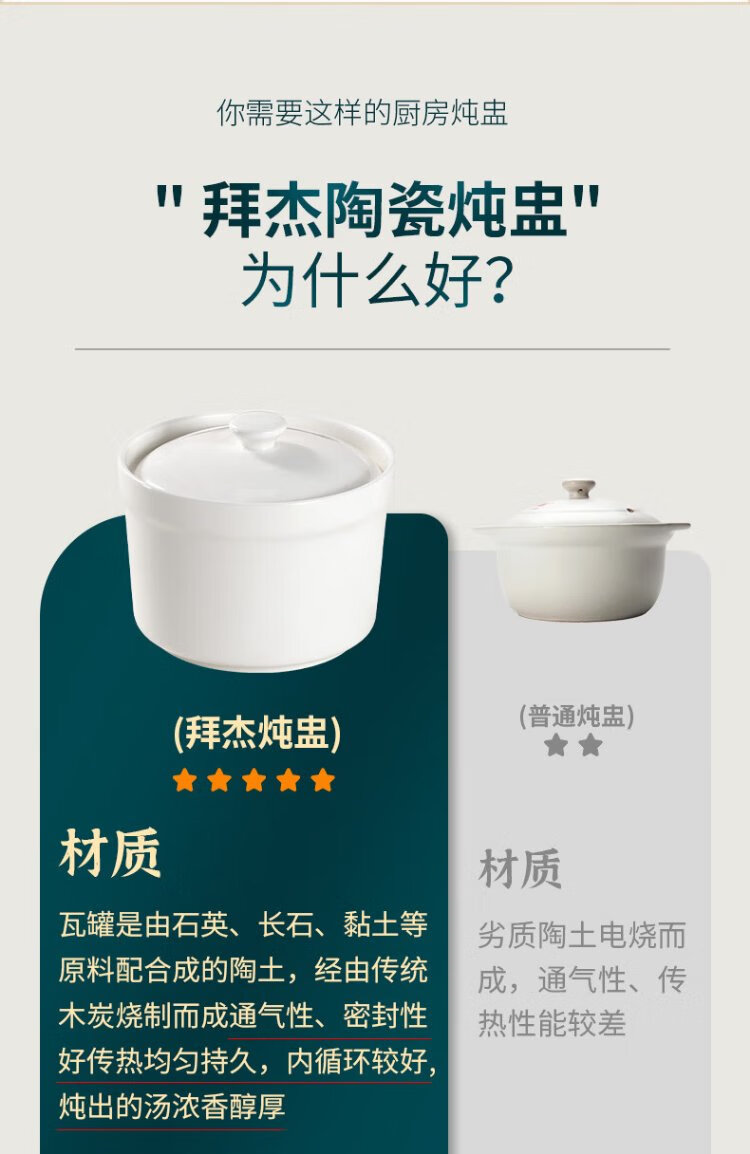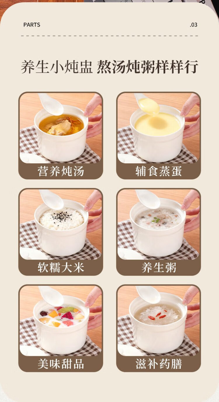 Baijie stew pot ceramic soup bowl water-proof inner pot steamed egg bowl lard porridge bird's nest cup pot tableware with lid spoon medium 400ml