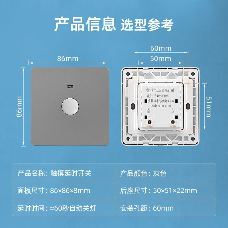 Tianshili touch delay switch intelligent induction automatic power off corridor stair light delay switch white (5 pieces)