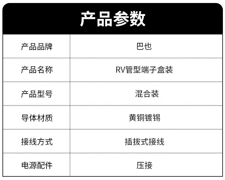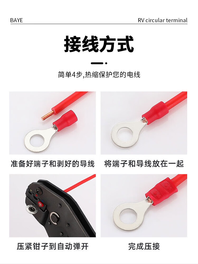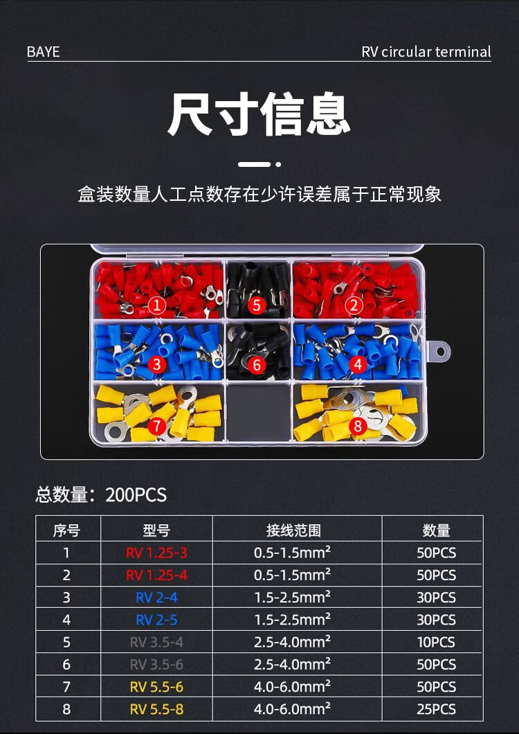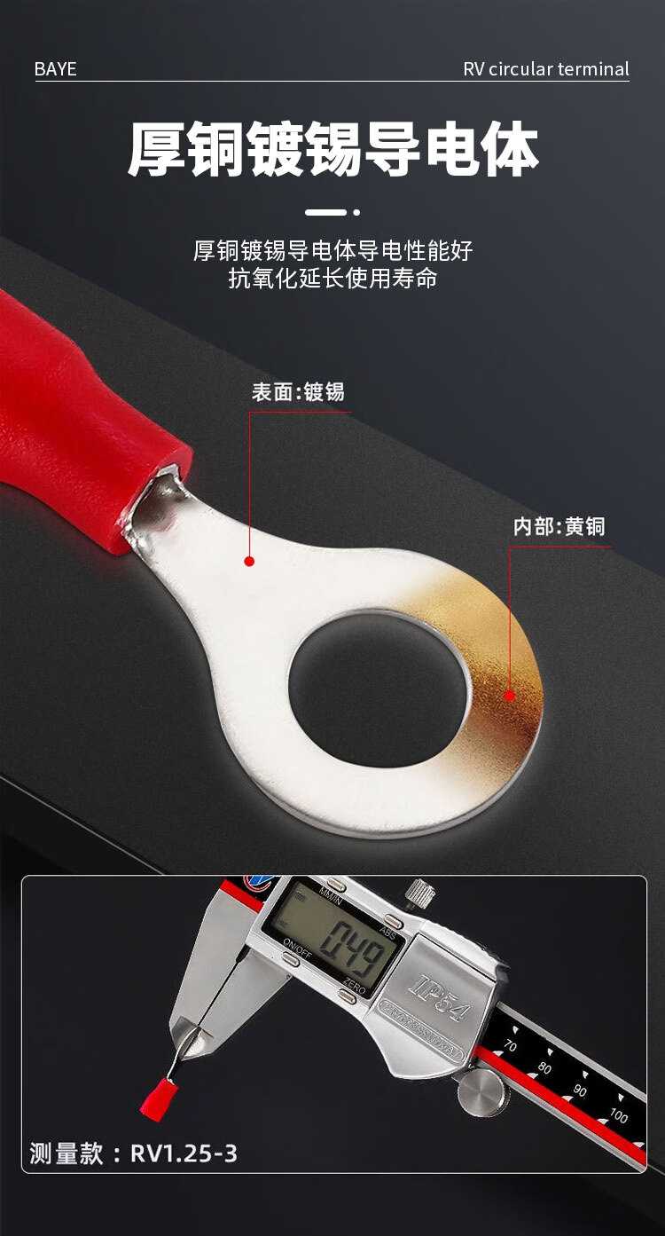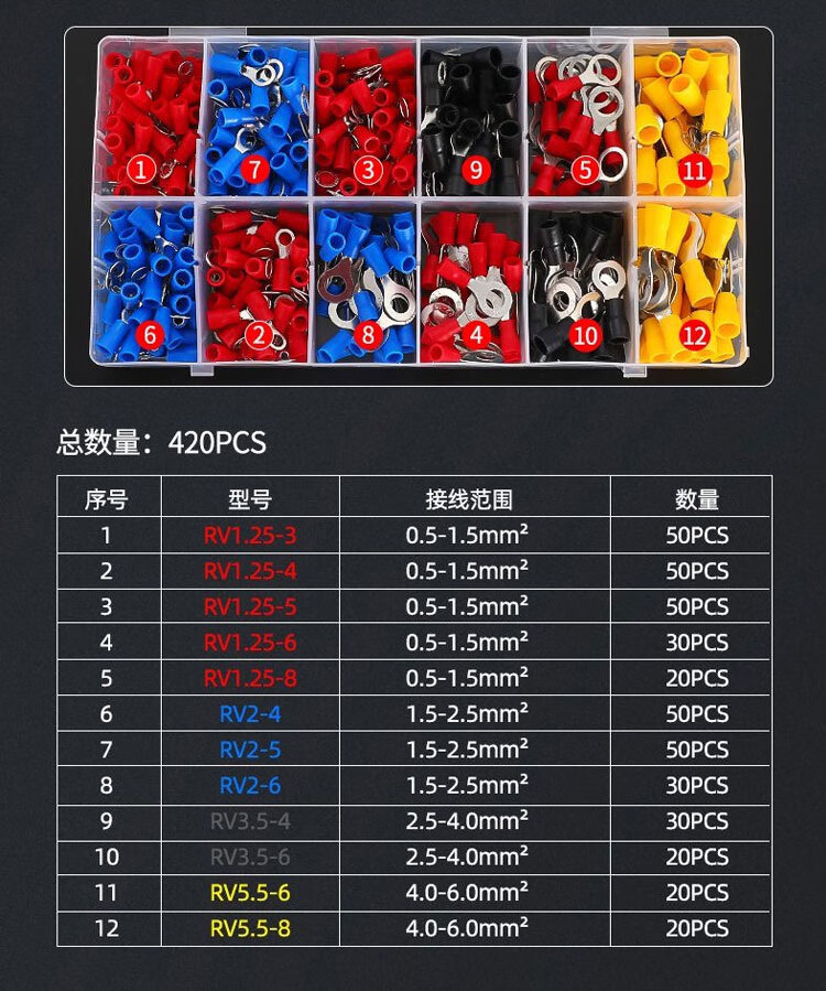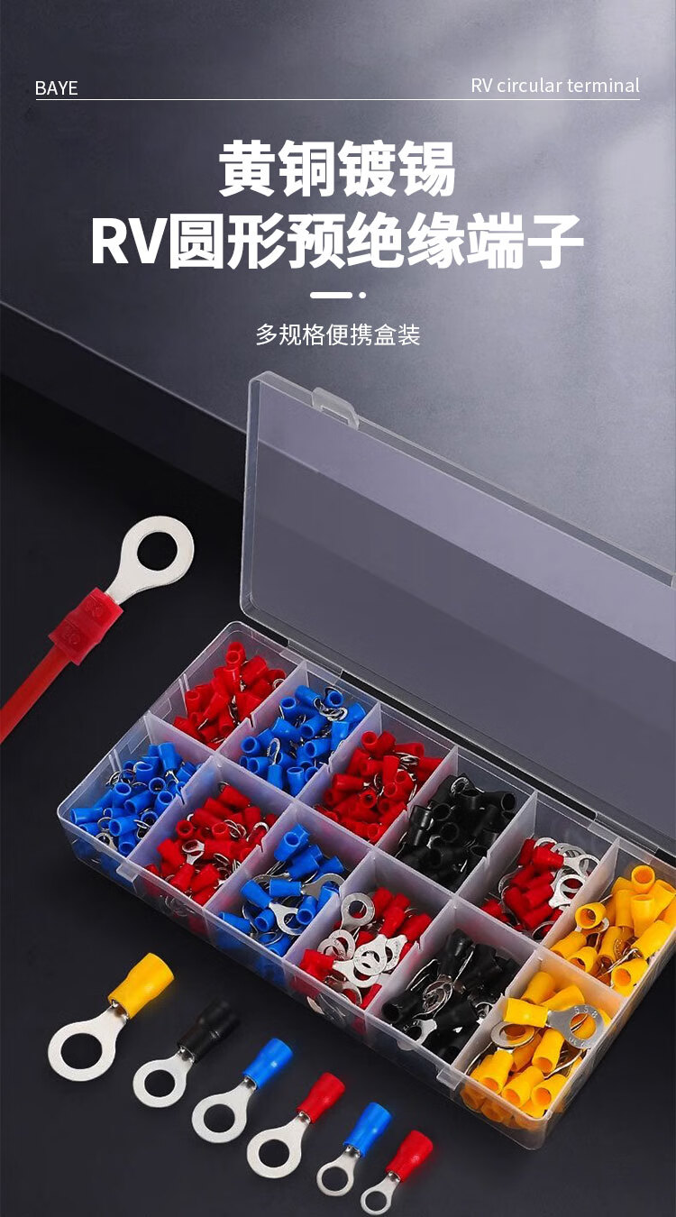 Baye RV round pre-insulated cold-pressed terminal blocks round copper nose 420 pieces set BY-RV2DZ