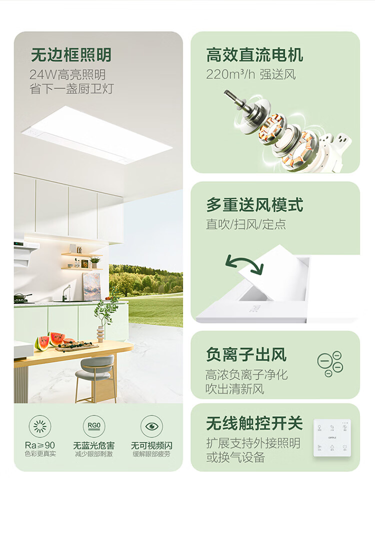 Op Lighting Infinity DC Liangba Lighting Three-in-one Kitchen Fan Air Conditioner Fan Cooler Embedded LZ02
