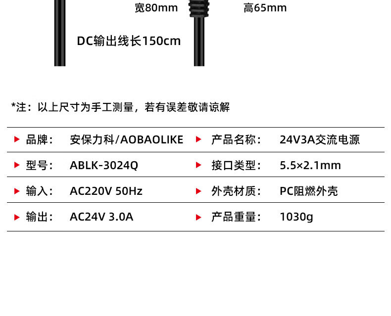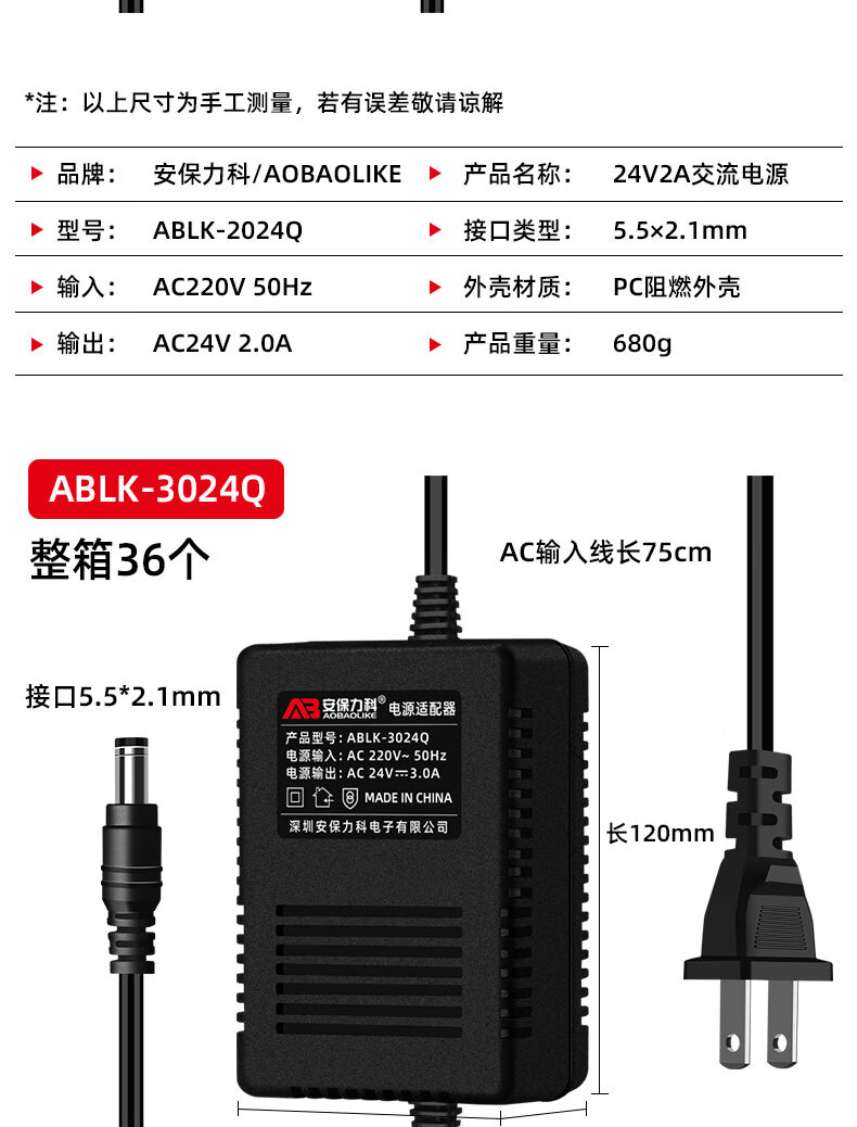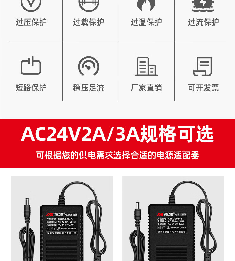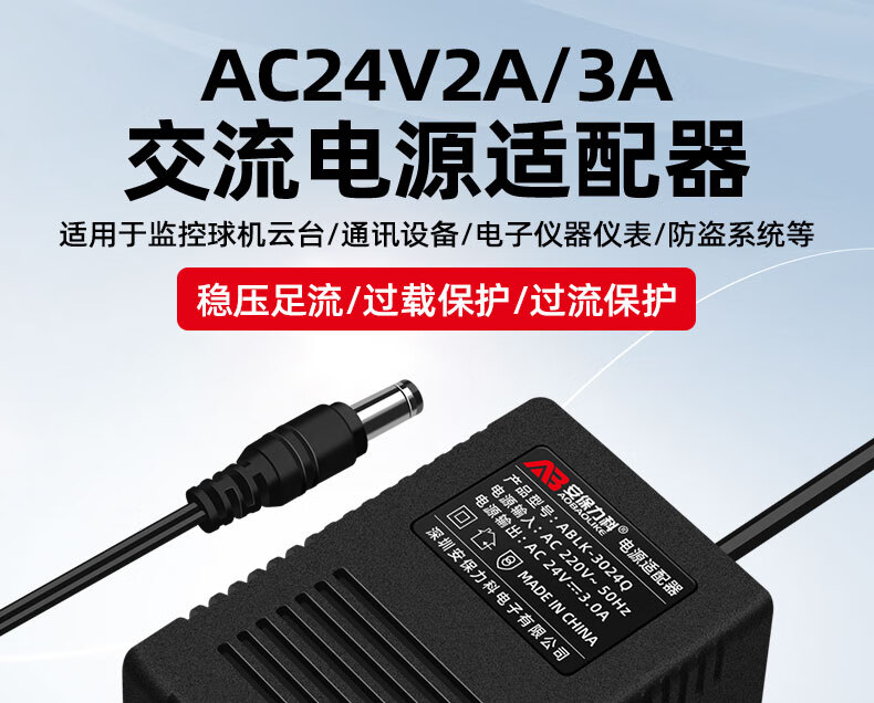 Security LeCroy surveillance camera 220V to AC24V3A dome machine AC power adapter voltage stabilizing switch transformer indoor ABLK-3024Q