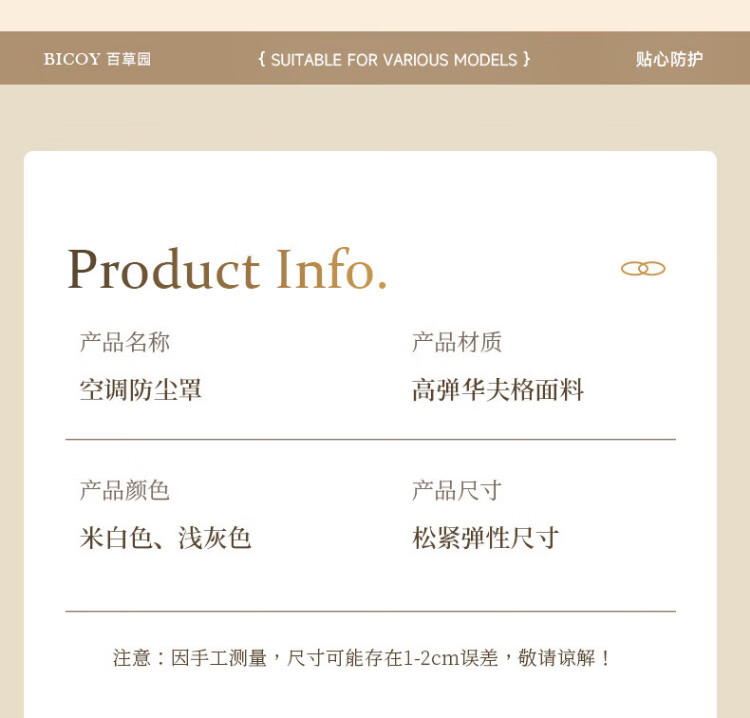 Baicaoyuan air conditioner dust cover protective cover hanging indoor unit air conditioner cover 1-2P inner universal elastic cloth washable