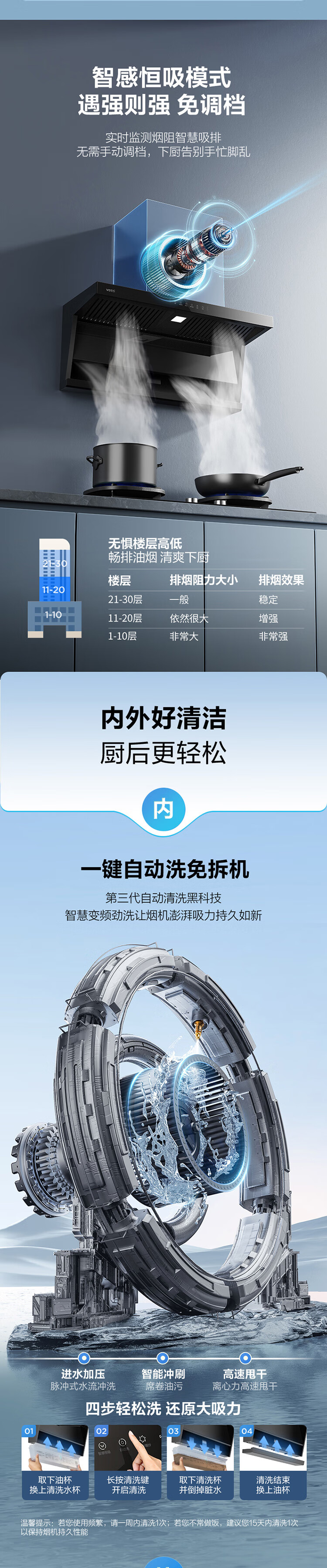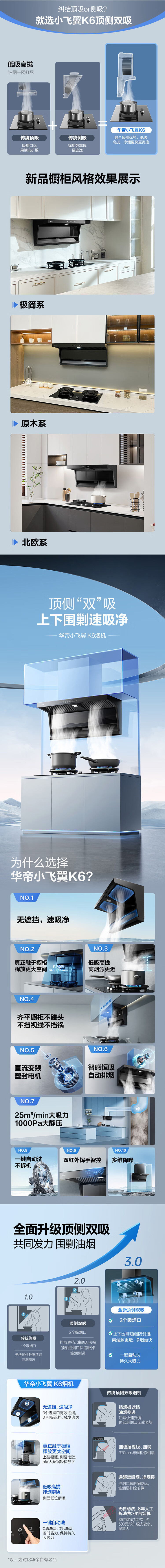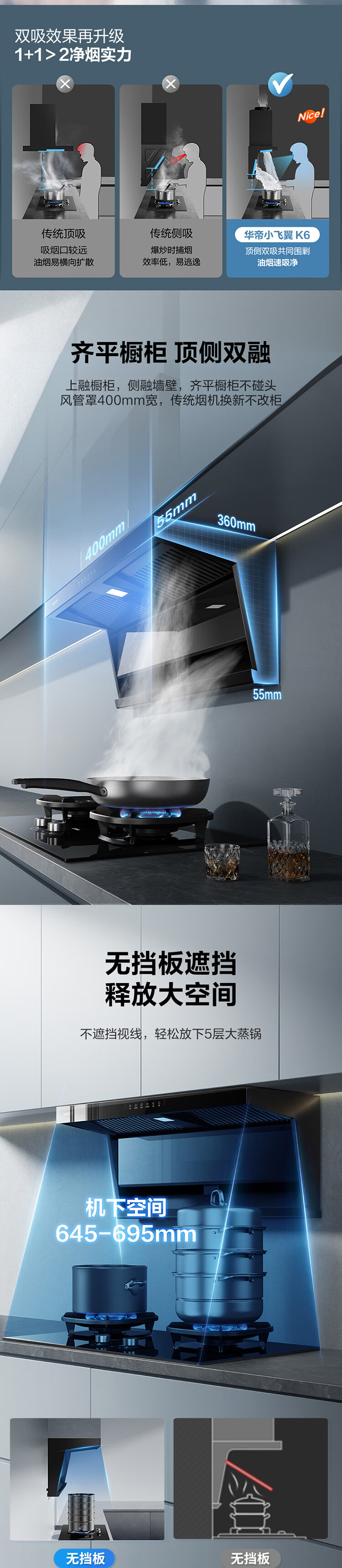 Vantage Xiaofeiyi K6 top-side double-suction range hood with variable frequency 25 air volume large suction power self-cleaning recommended to be paired with 308 stove household side suction i11236