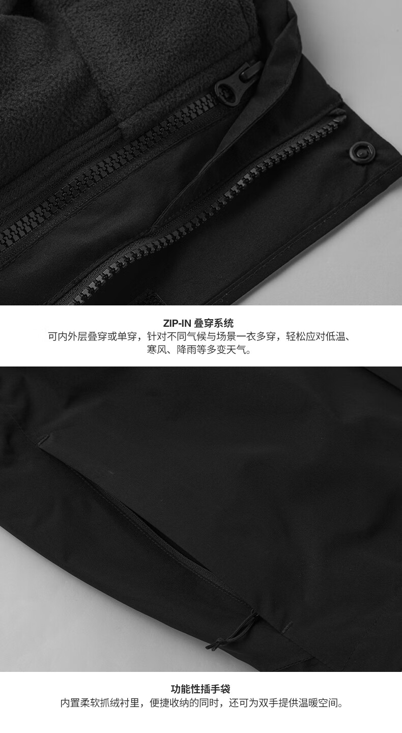 The North Face 3-in-1 Jacket Men's Hard Shell Waterproof and Windproof Fleece Liner Hooded JK3/Black L