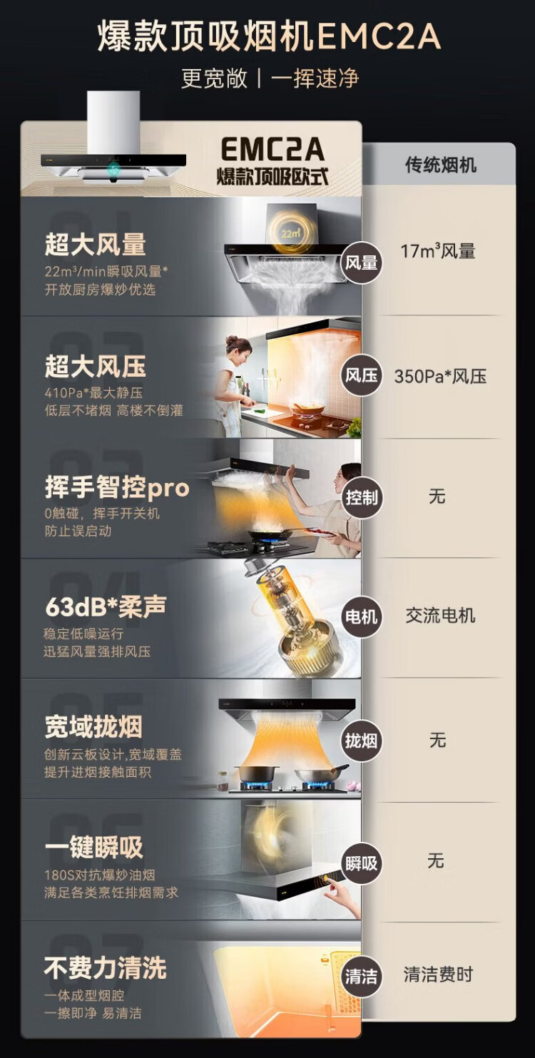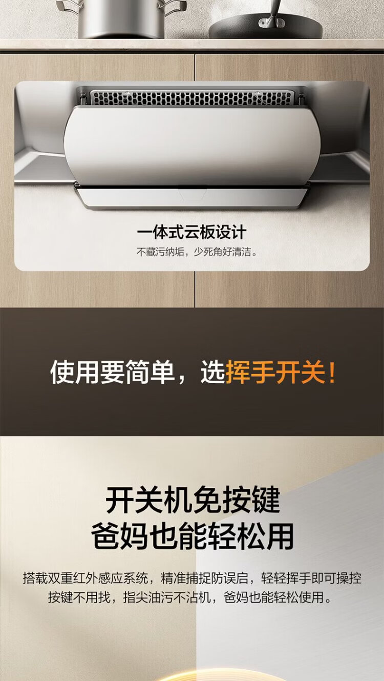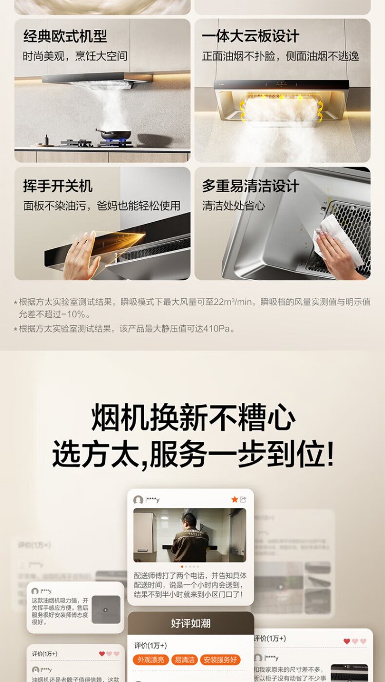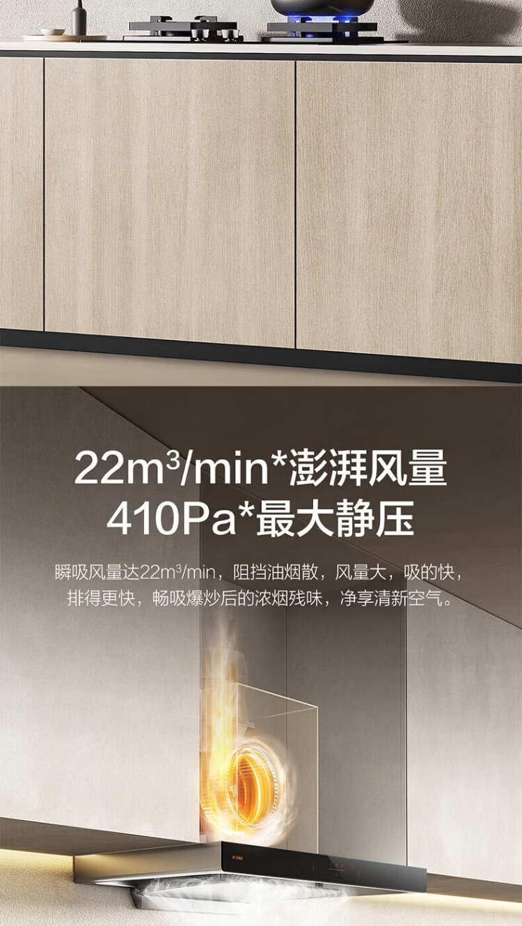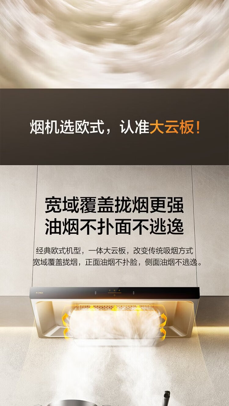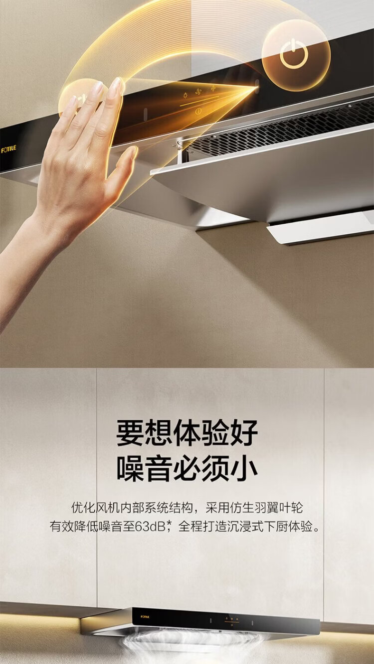 FOTILE range hood, national supplement, top-suction European-style large suction power 22 cubic meters, large air volume, large suction power, wave-waving intelligent control, one-button instant suction, low energy consumption CXW-358-EMC2A
