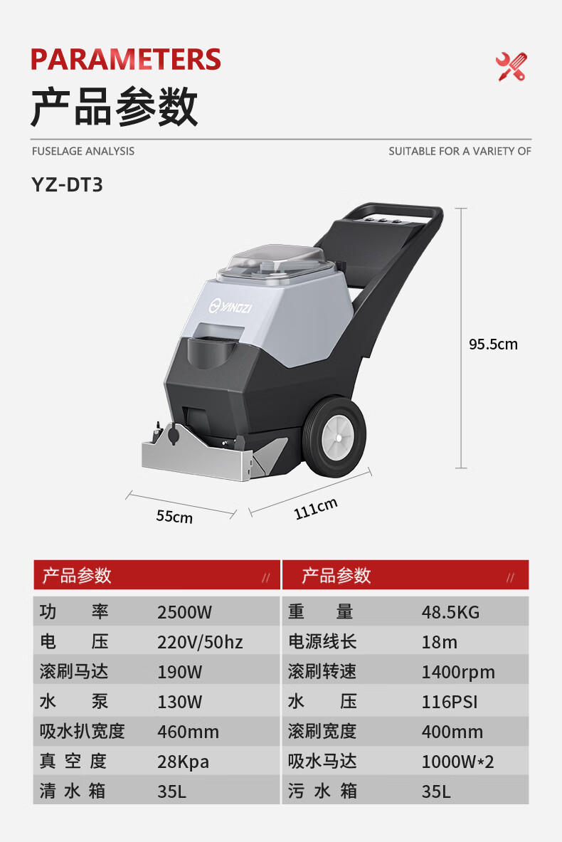 Yangzi (YANGZI) carpet cleaning machine commercial high-power spray brush suction three-in-one carpet extraction cleaning machine office hotel hotel carpet sofa curtain cleaning machine DT3