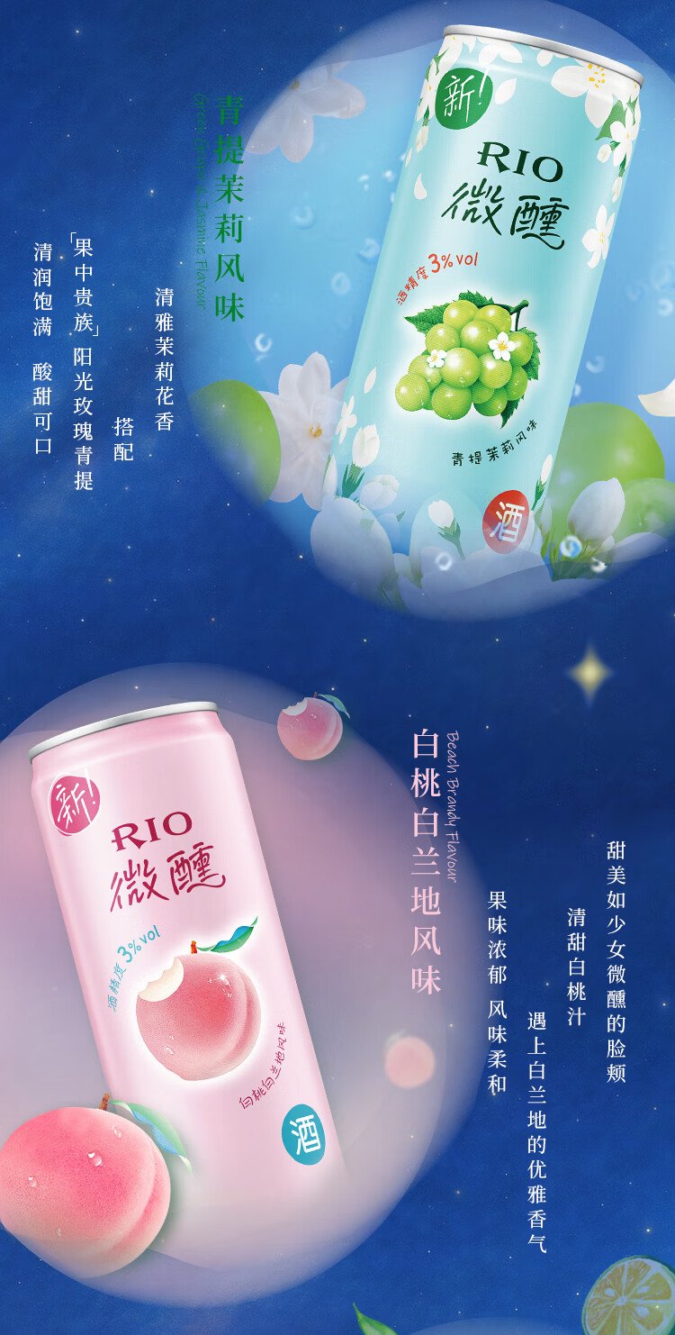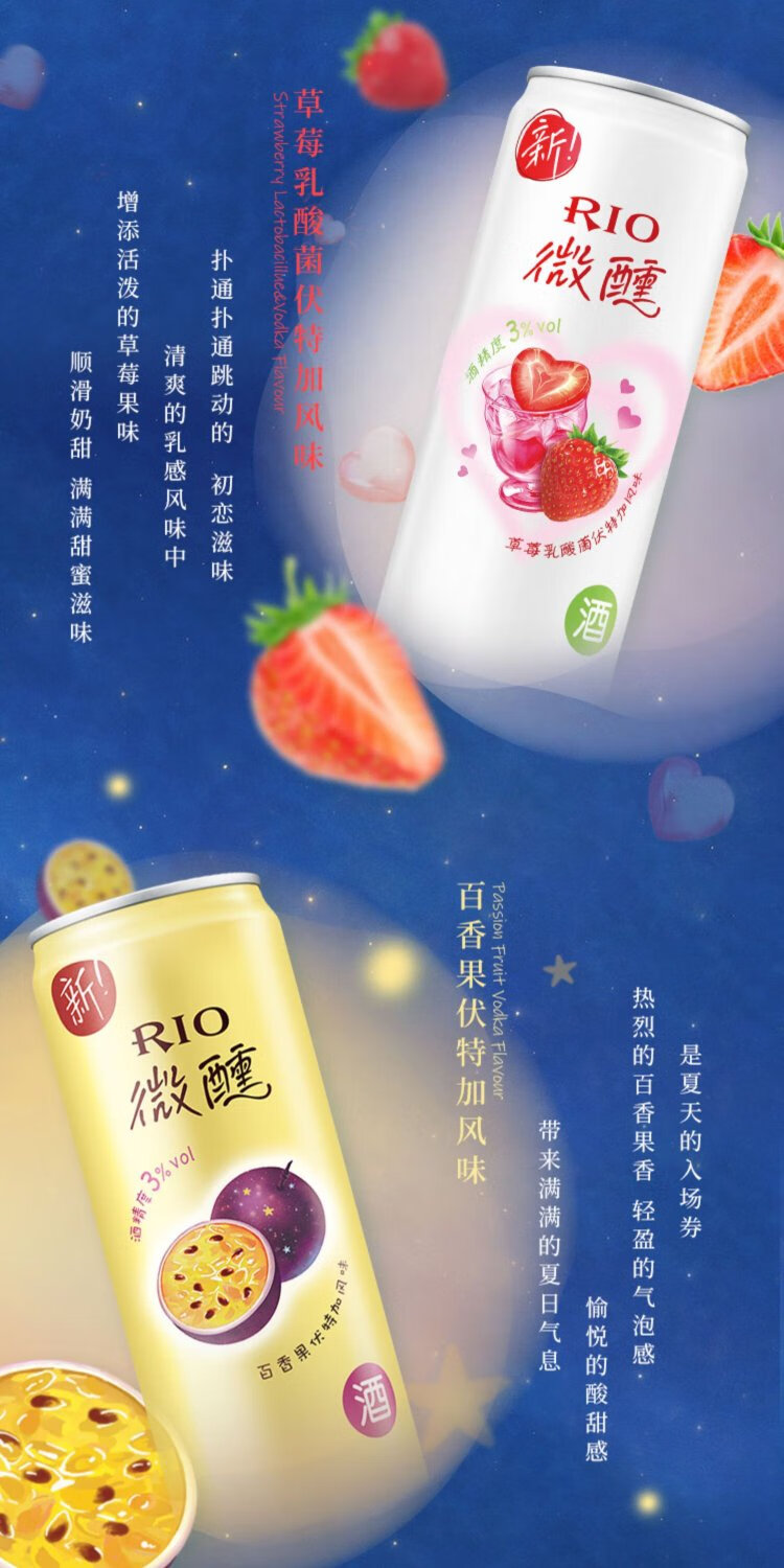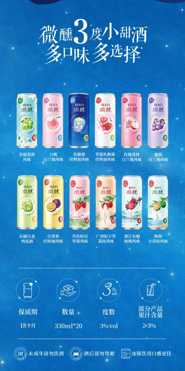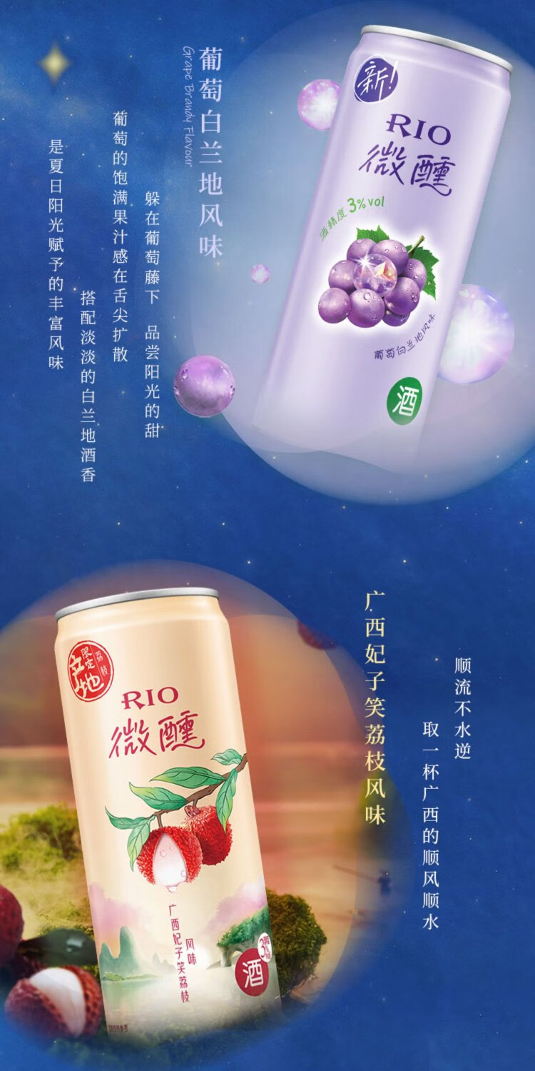 RIO foreign wine, pre-mixed wine, cocktail, fruit wine 3 degrees, slightly drunken liqueur, lactic acid bacteria flavor 330ml*8 cans