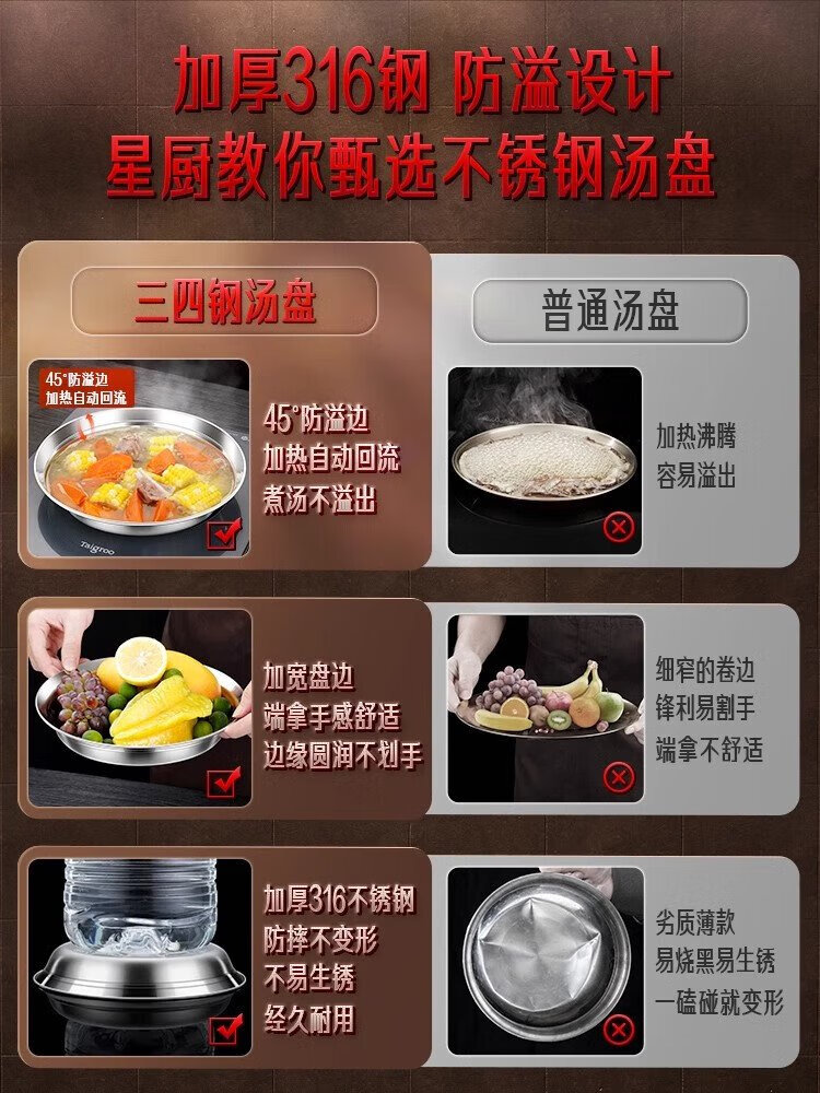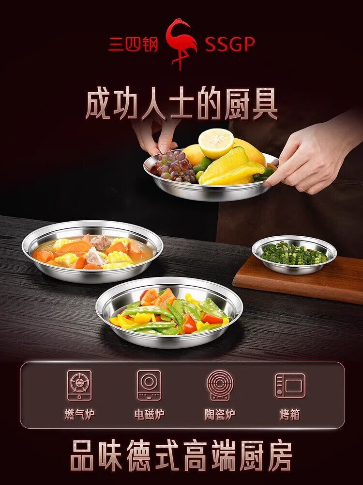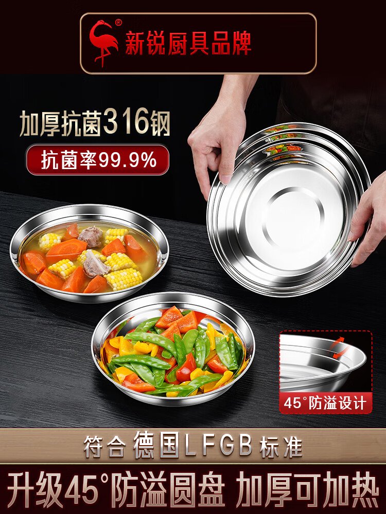 SSGP 34 steel 316 stainless steel plate food grade dish soup basin basin soup plate 22cm pack of two No. 1 member store