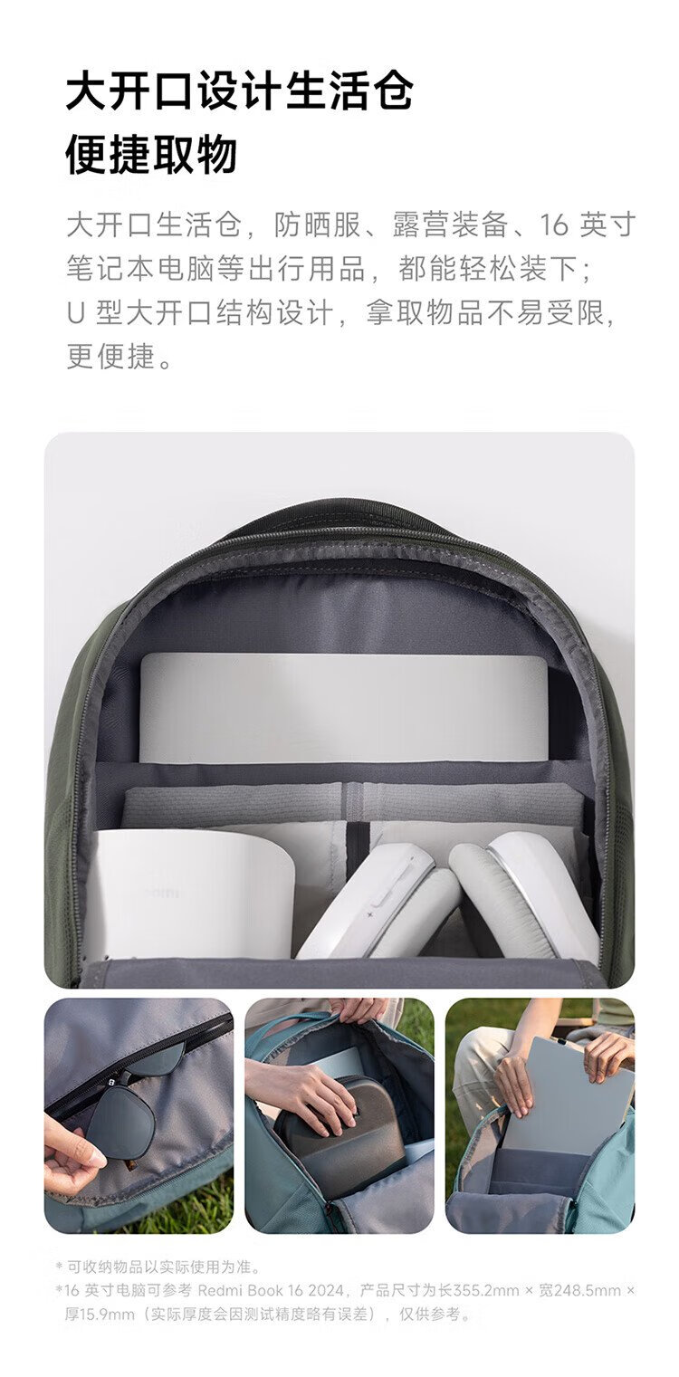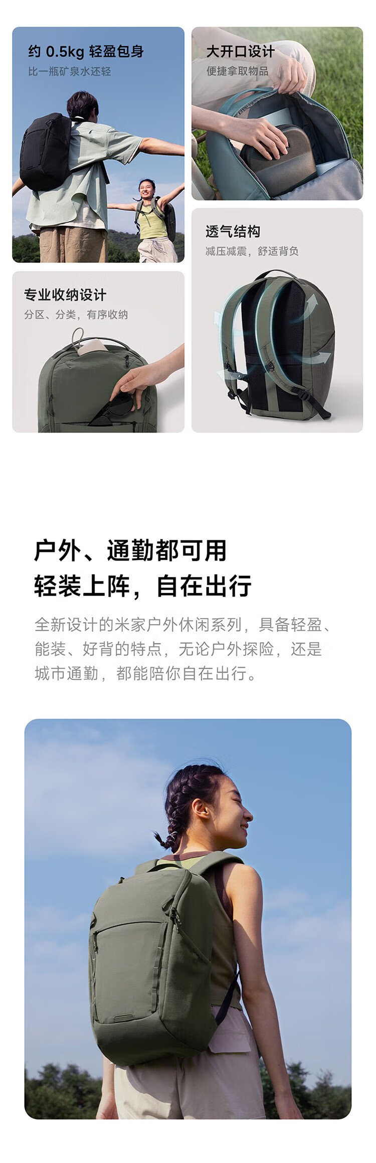 Mijia Xiaomi Outdoor Leisure Sports Backpack Men's School Bag Women's Computer Bag Lightweight Mountaineering Bag Travel Bag Jungle Green