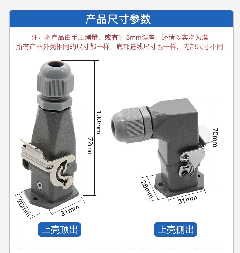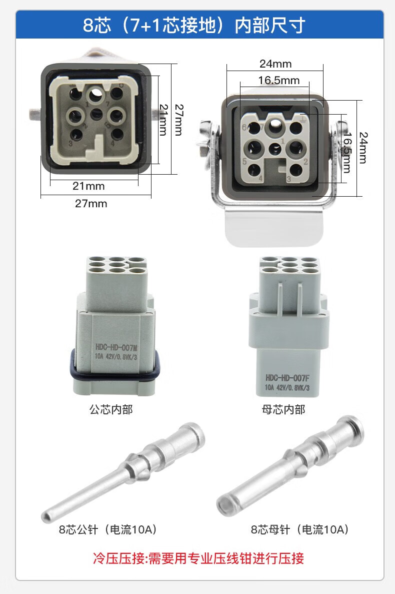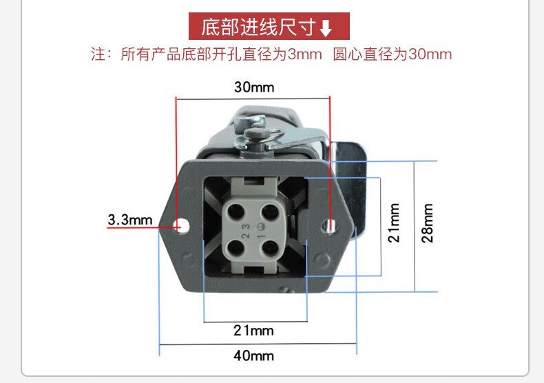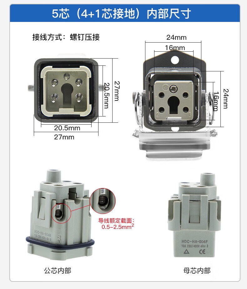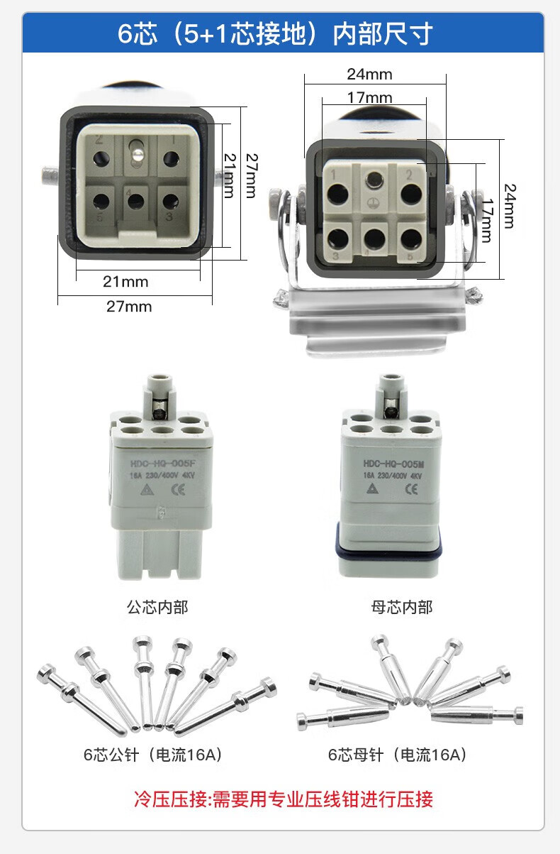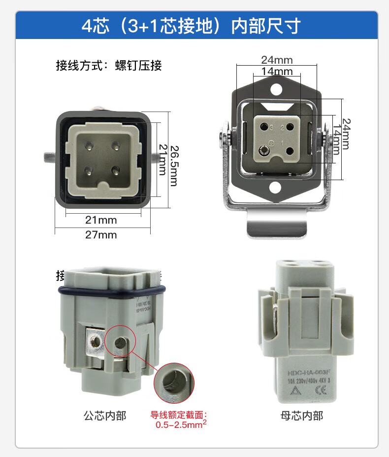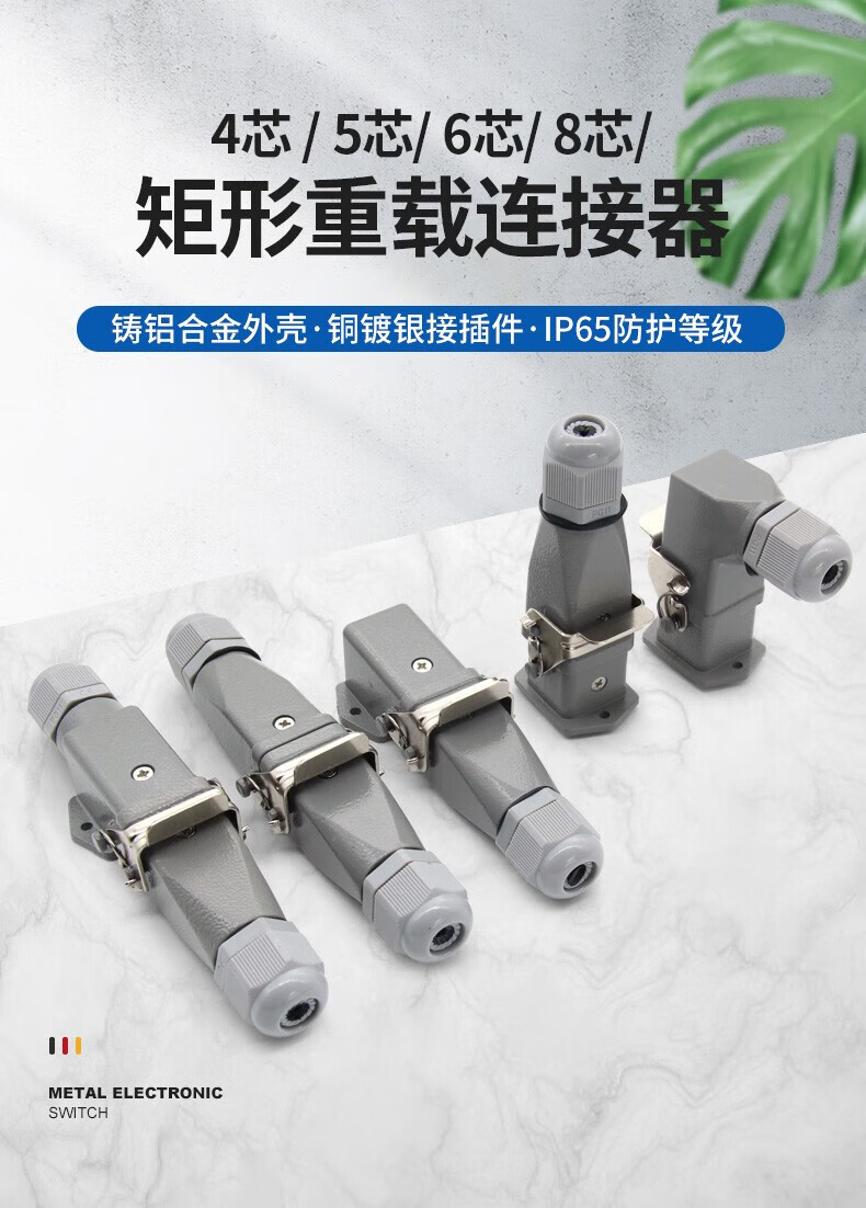 Huijun rectangular aviation plug and socket male and female hot channel flow heavy-duty connector cable docking 4-core (3+1 grounding) ejection