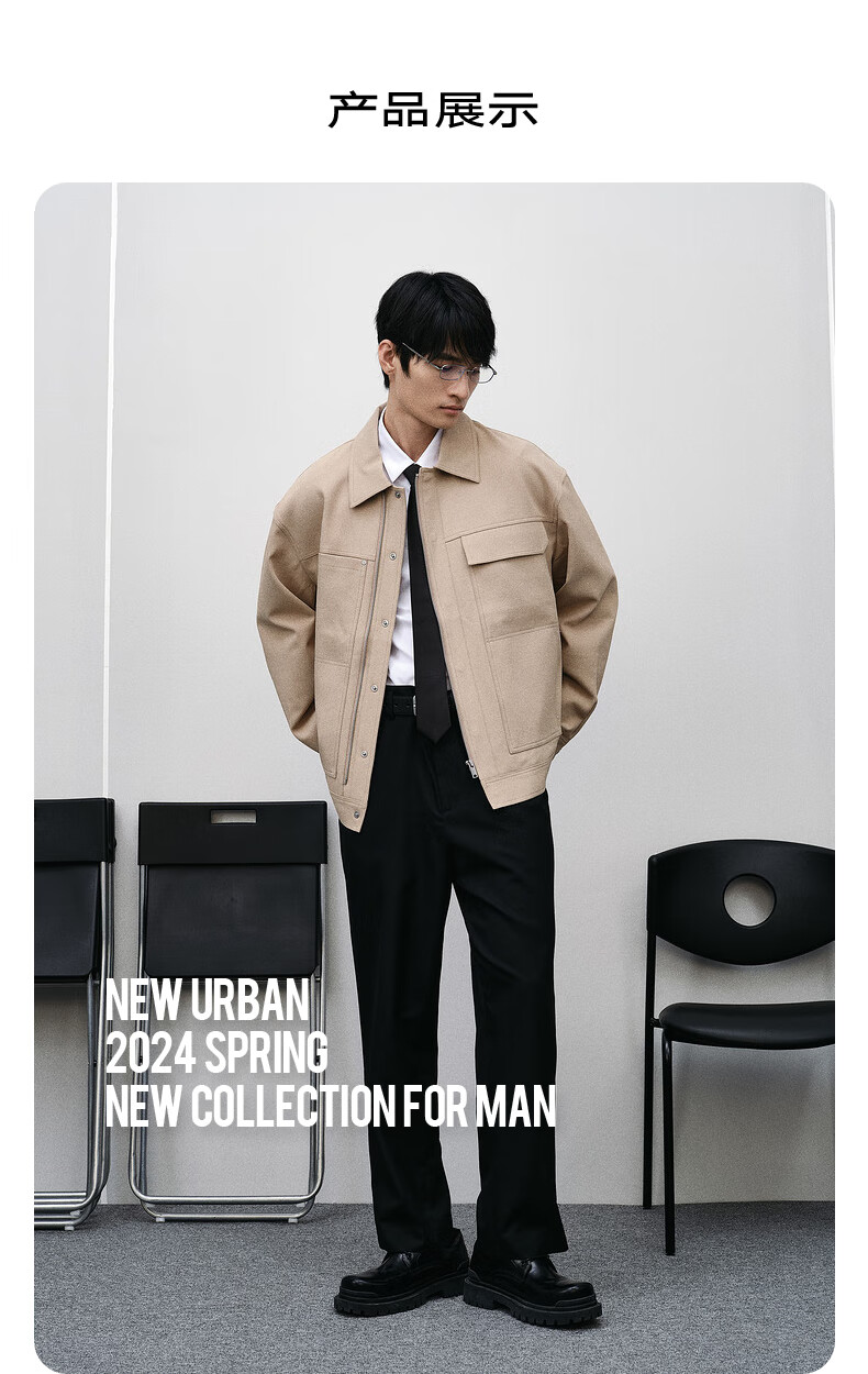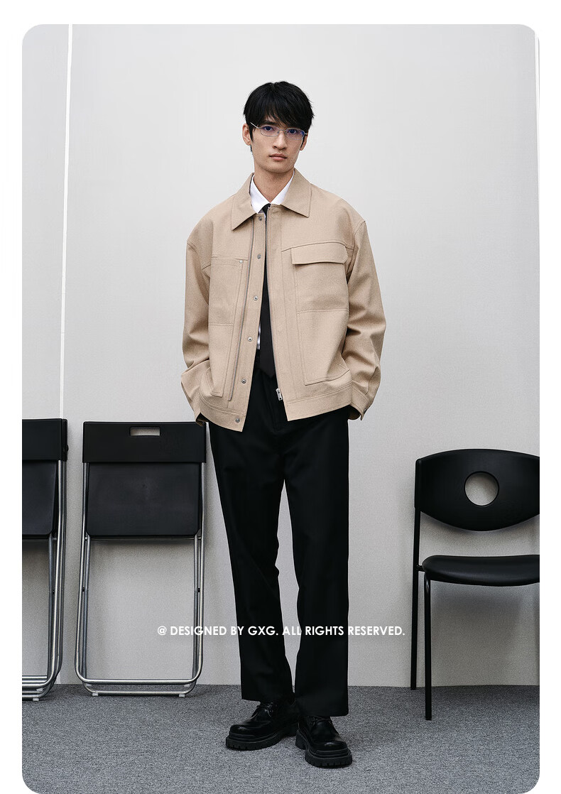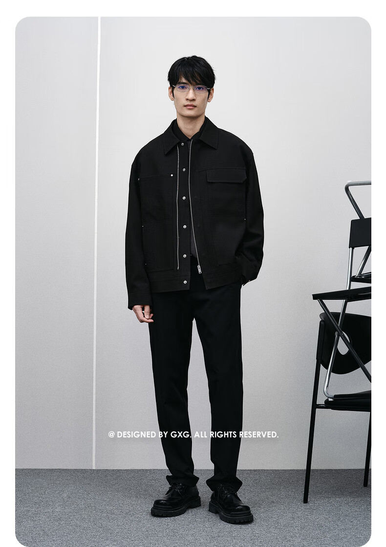 GXG Men's Shopping Mall Same Style Two-Color Lapel Jacket Black 175/L
