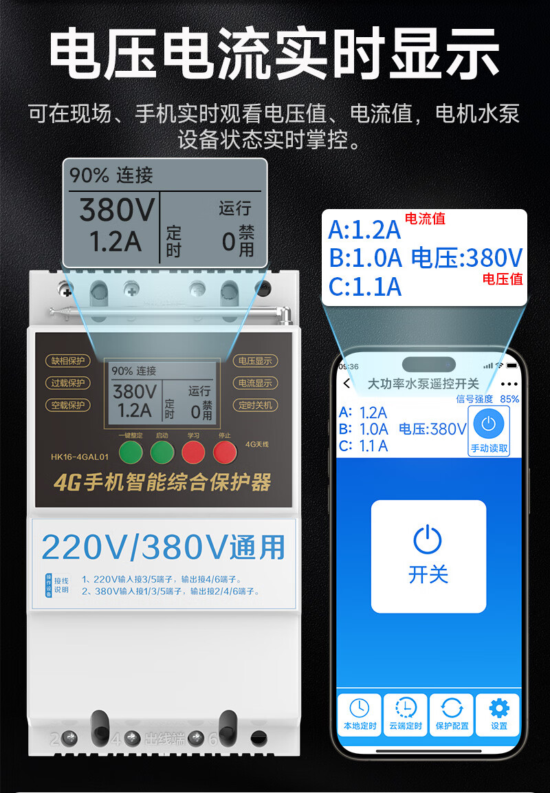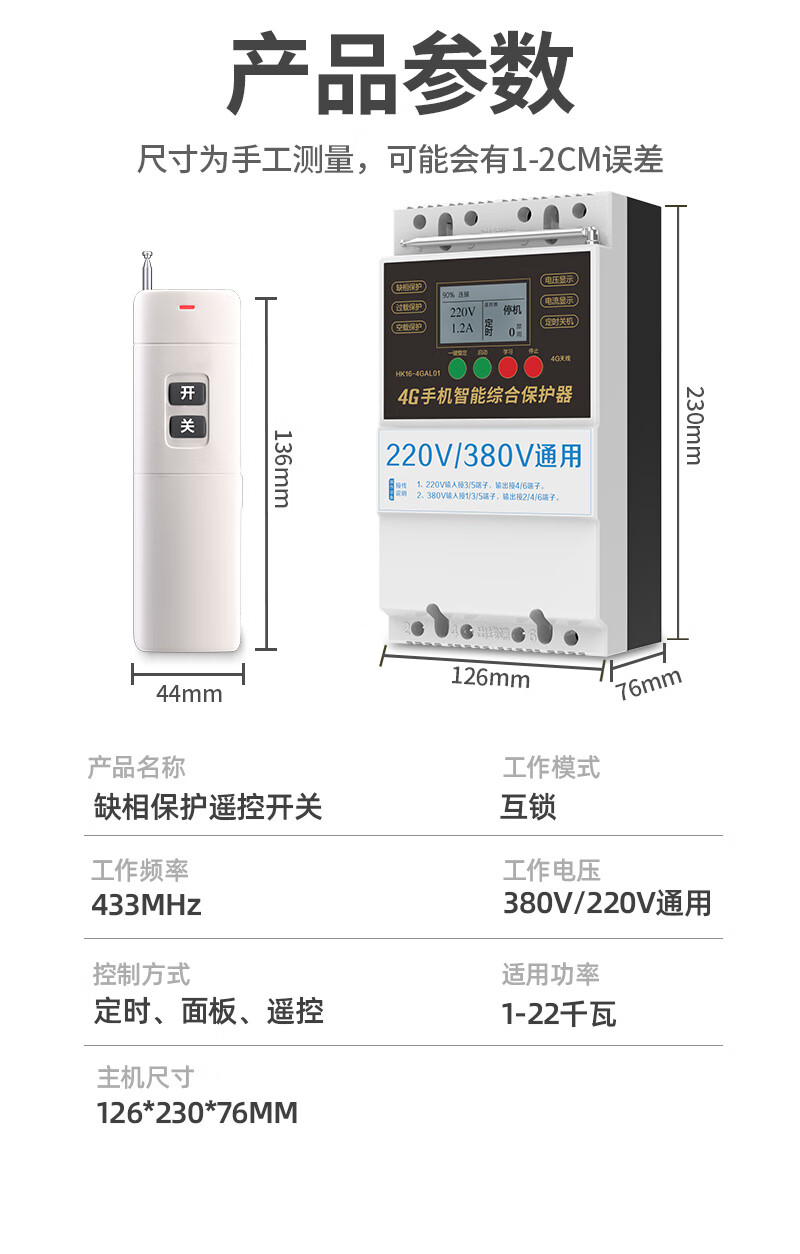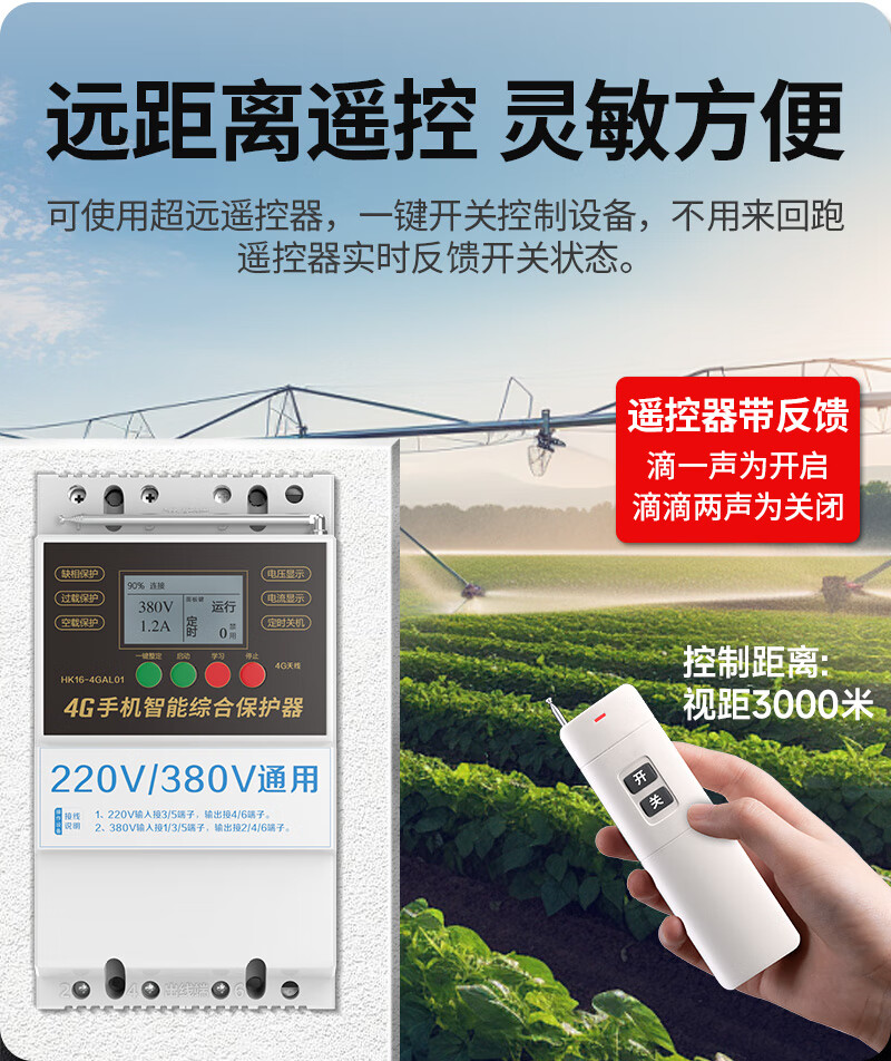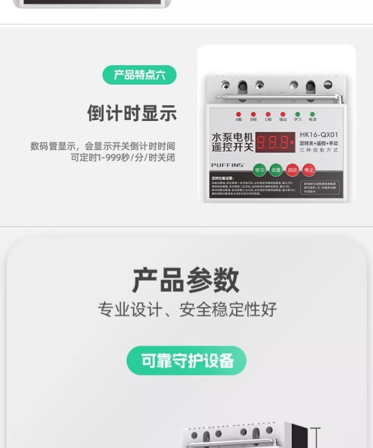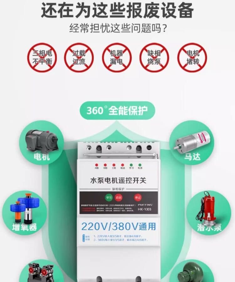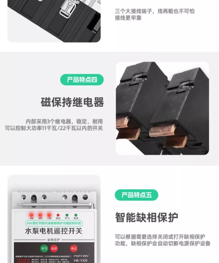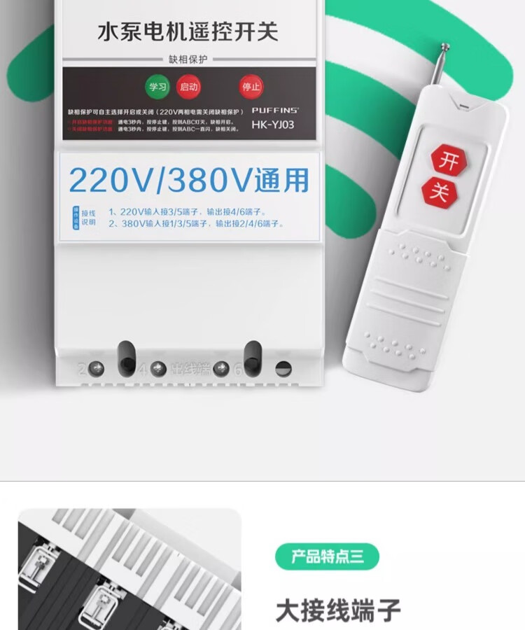 Puffin three-phase electric remote control switch 220V380V high power remote control switch water pump motor power supply wireless intelligent controller remote control 11 kilowatt + 3 kilometers remote control