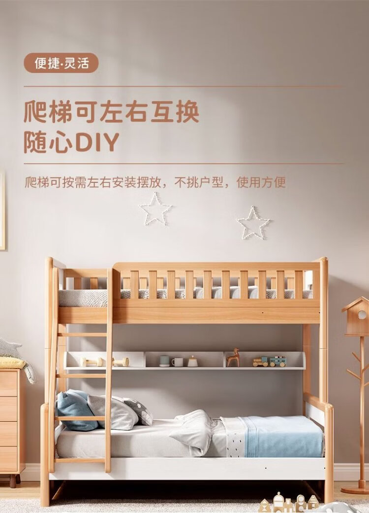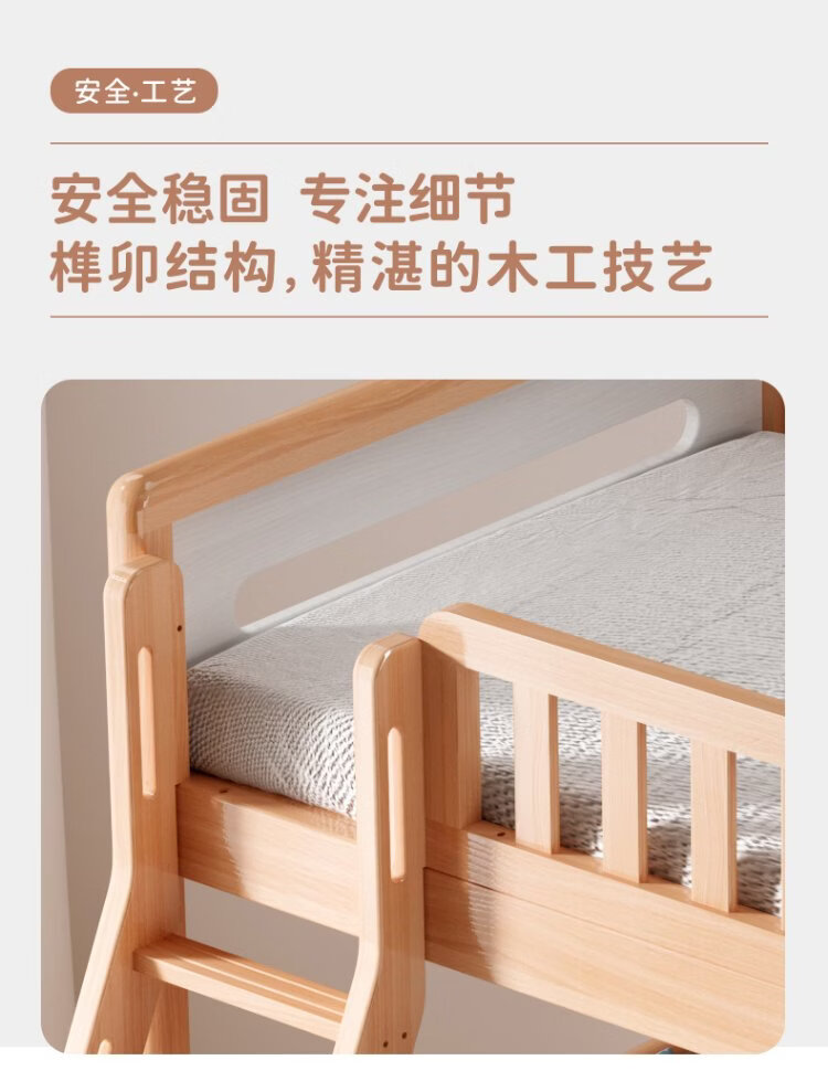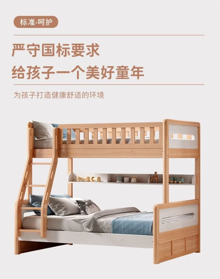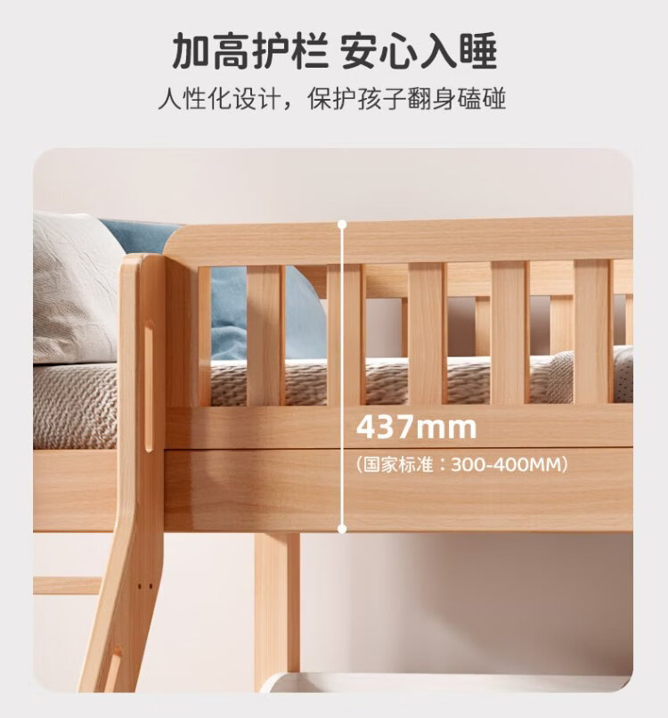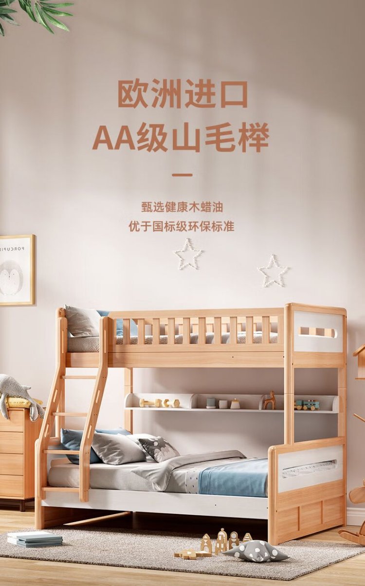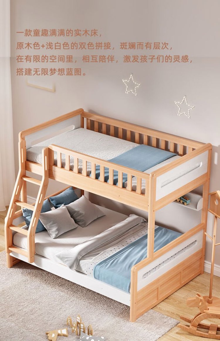 Jingjing Tokyo Home Furnishing Children's Bed AA Grade Beech Heightened Guardrails Solid Wood Bunk Bed High and Low Bed Set