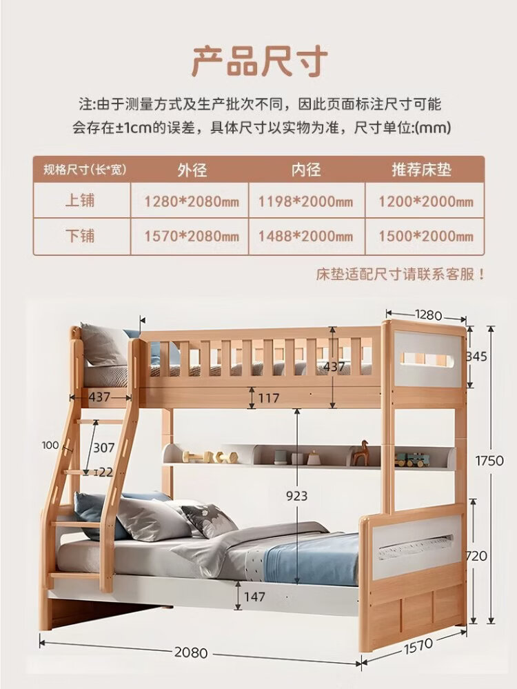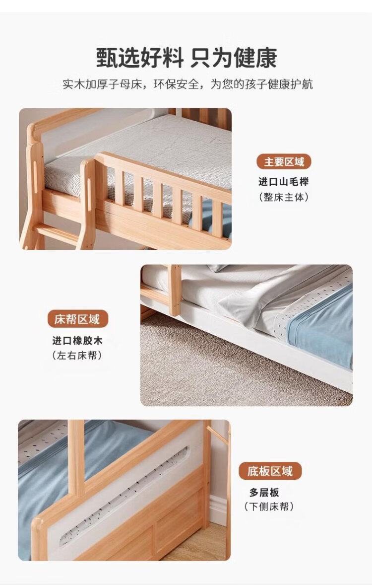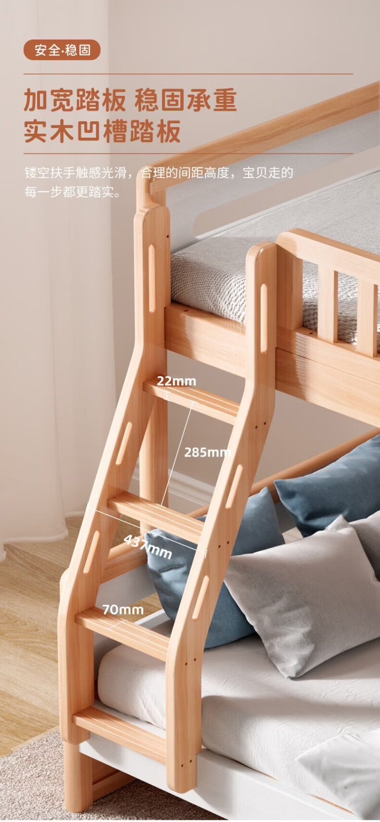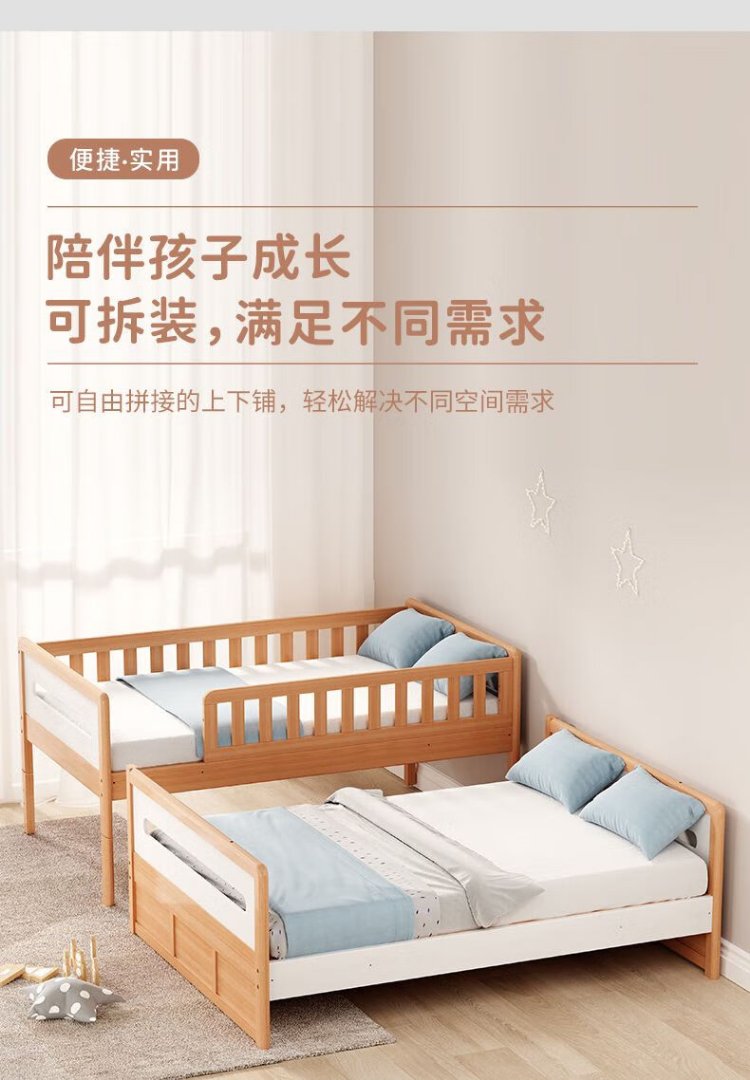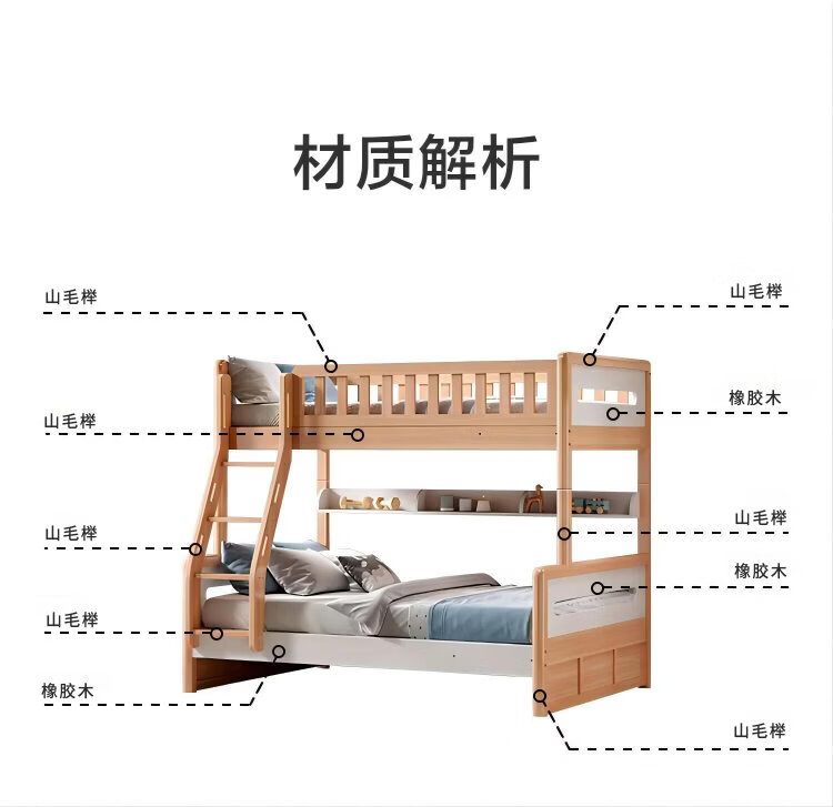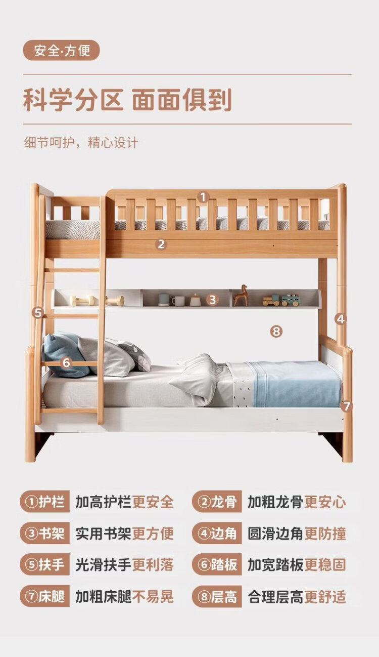 Jingjing Tokyo Home Furnishing Children's Bed AA Grade Beech Heightened Guardrails Solid Wood Bunk Bed High and Low Bed Set