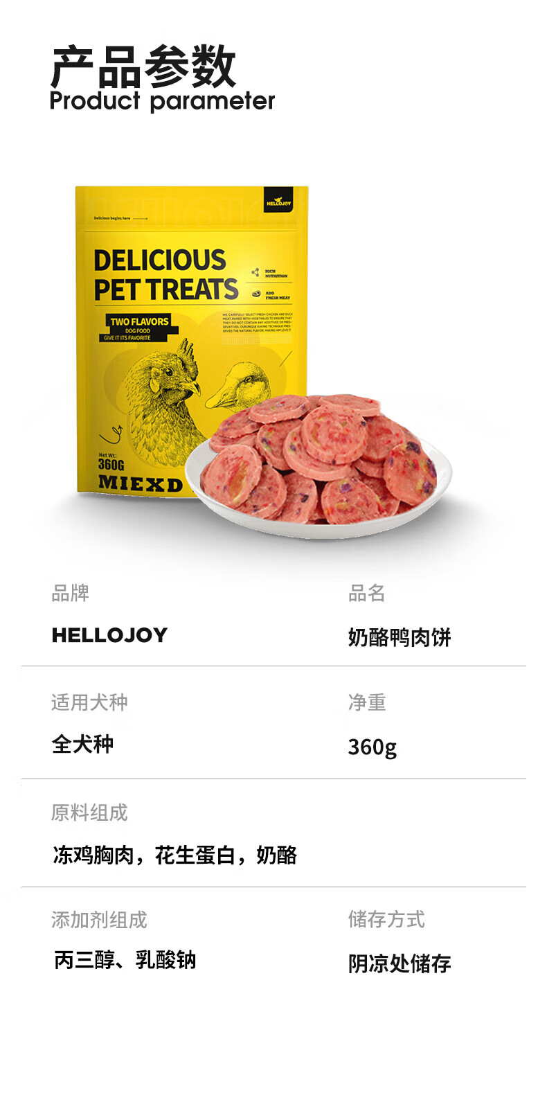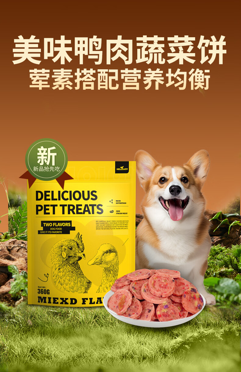 HELLOJOY Dog Snacks Duck Dried Teddy Golden Retriever Puppies Teeth Training Reward Cheese Duck Patties 360g