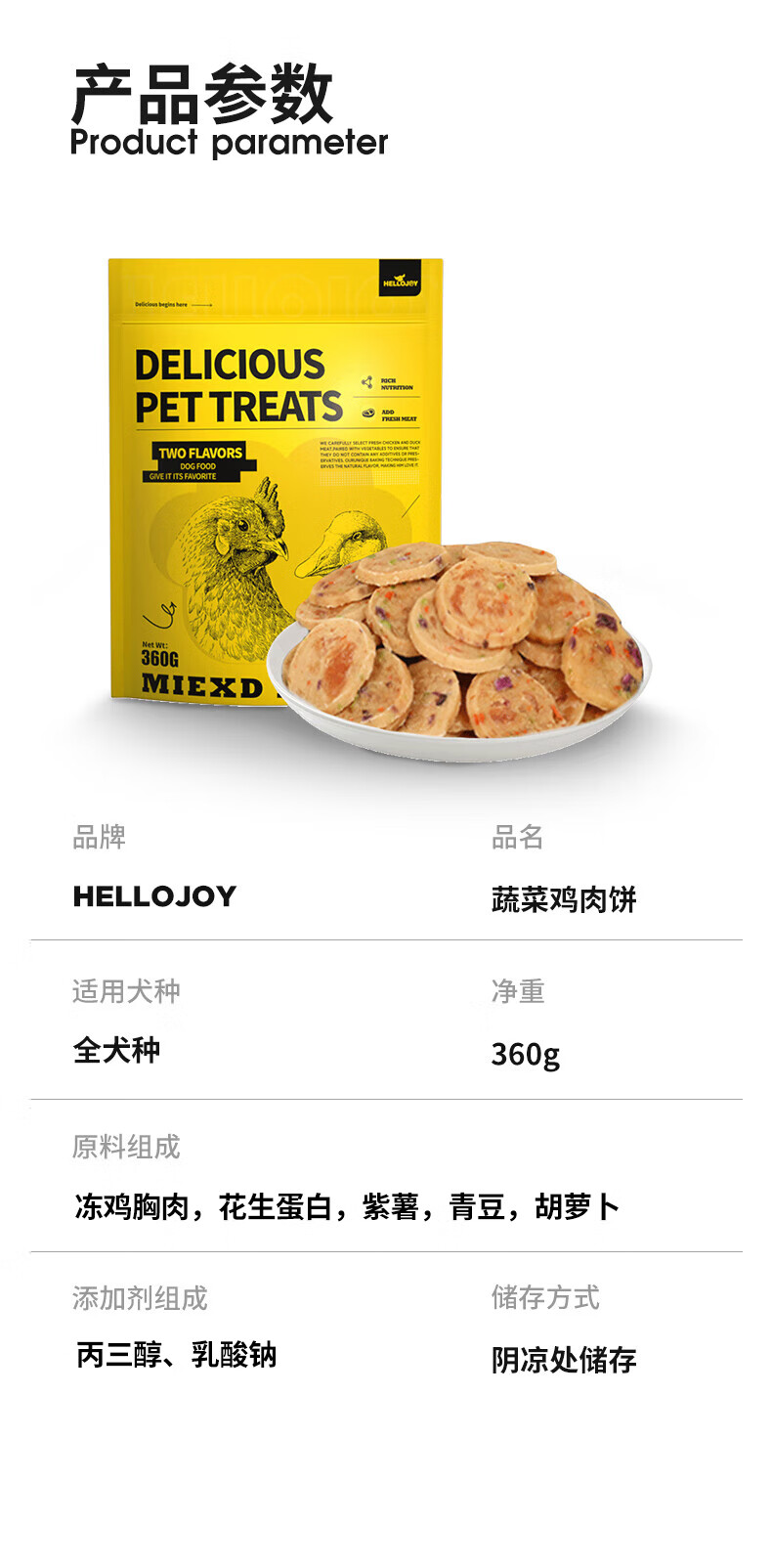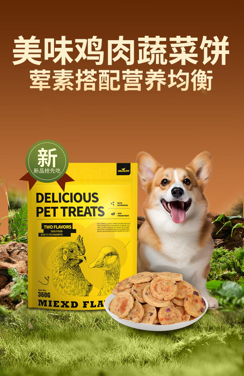 HELLOJOY Dog Snacks Chicken Dried Teddy Golden Retriever Puppies Teeth Training Reward Vegetable Chicken Cake 360g