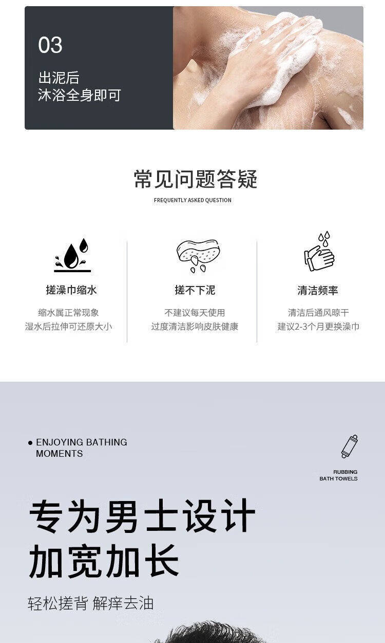 Creative art bath towel, men's bath towel, powerful mud bath towel, bath gloves, coarse sand, enlarged and widened set of 2 pieces